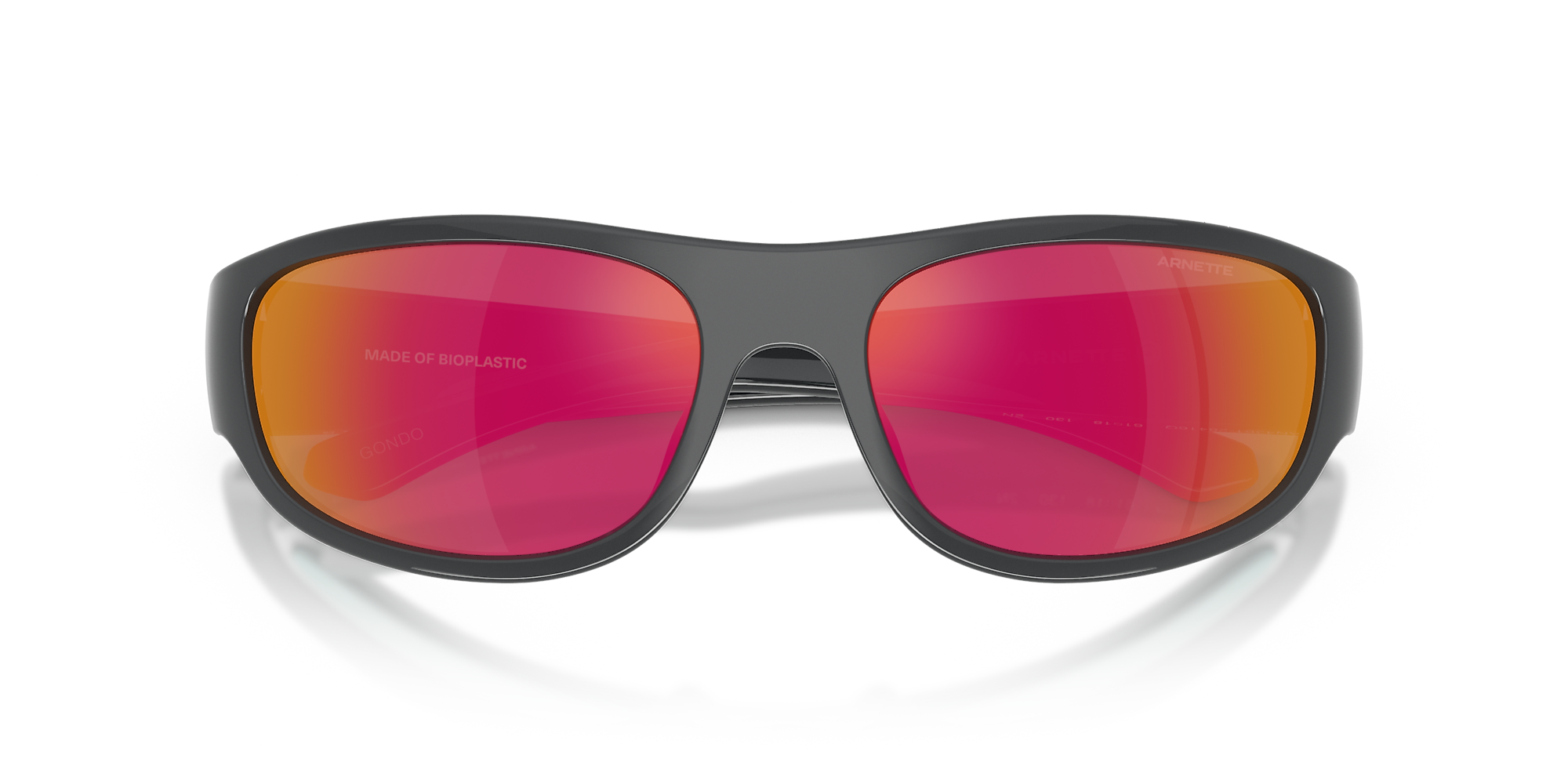 Step up your fashion game with Arnette Gondo glasses. The polished dark grey frame, paired with pillow shape lenses, creates a unique and trendy look. The solid color mirror lenses in grey mirror orange/yellow adds a pop of color to the overall design. These shades are not only stylish but also functional.
