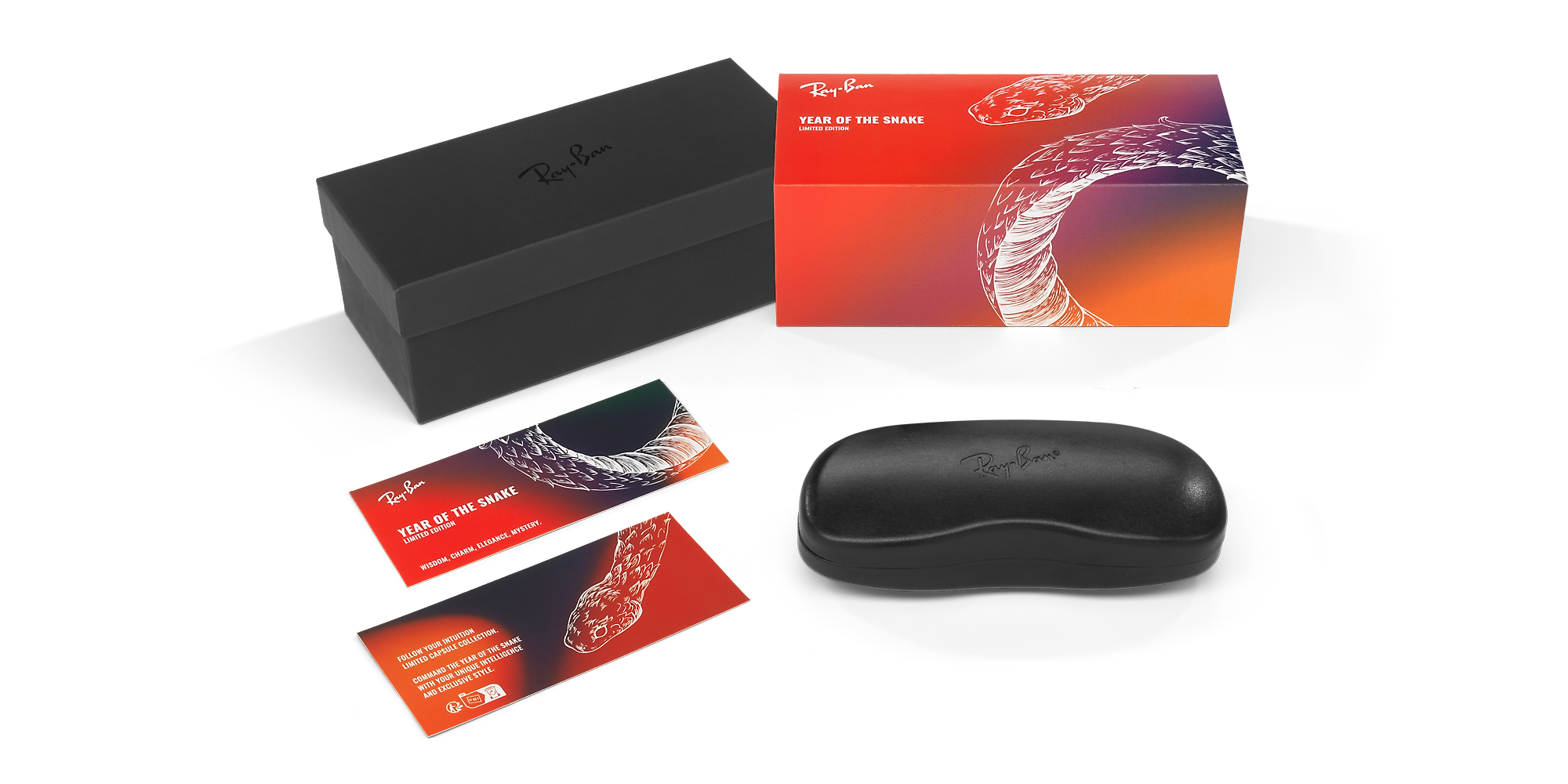 Discover the meticulous craftsmanship that unites style and optical functionality in Ray-Ban RB5425D Optics Year Of The Snake Edition glasses. These square-shaped frames are made from durable acetate, ensuring a comfortable fit and longevity. The polished black frame adds a touch of sophistication to any look. Embrace your individuality with these unique shades, featuring a snake motif on the temple tips. Available with prescription lenses.