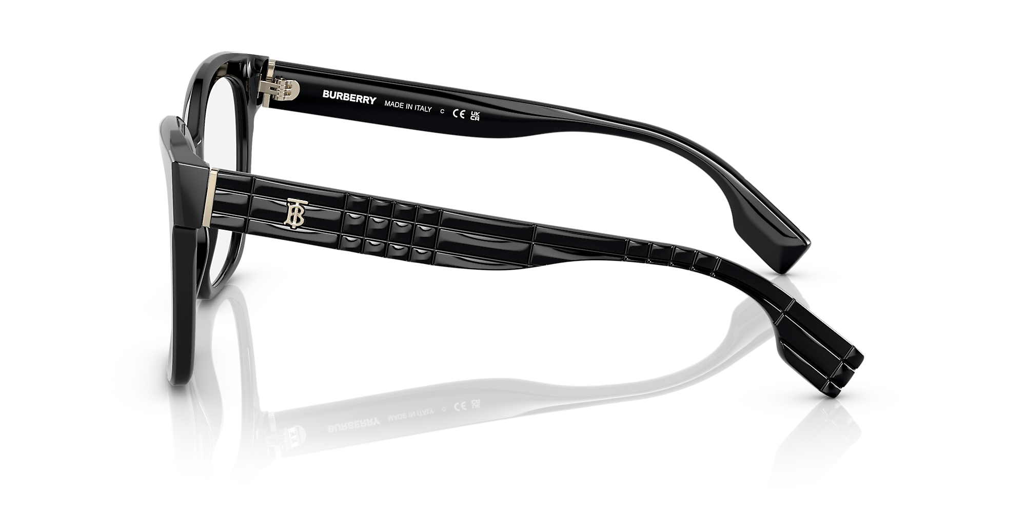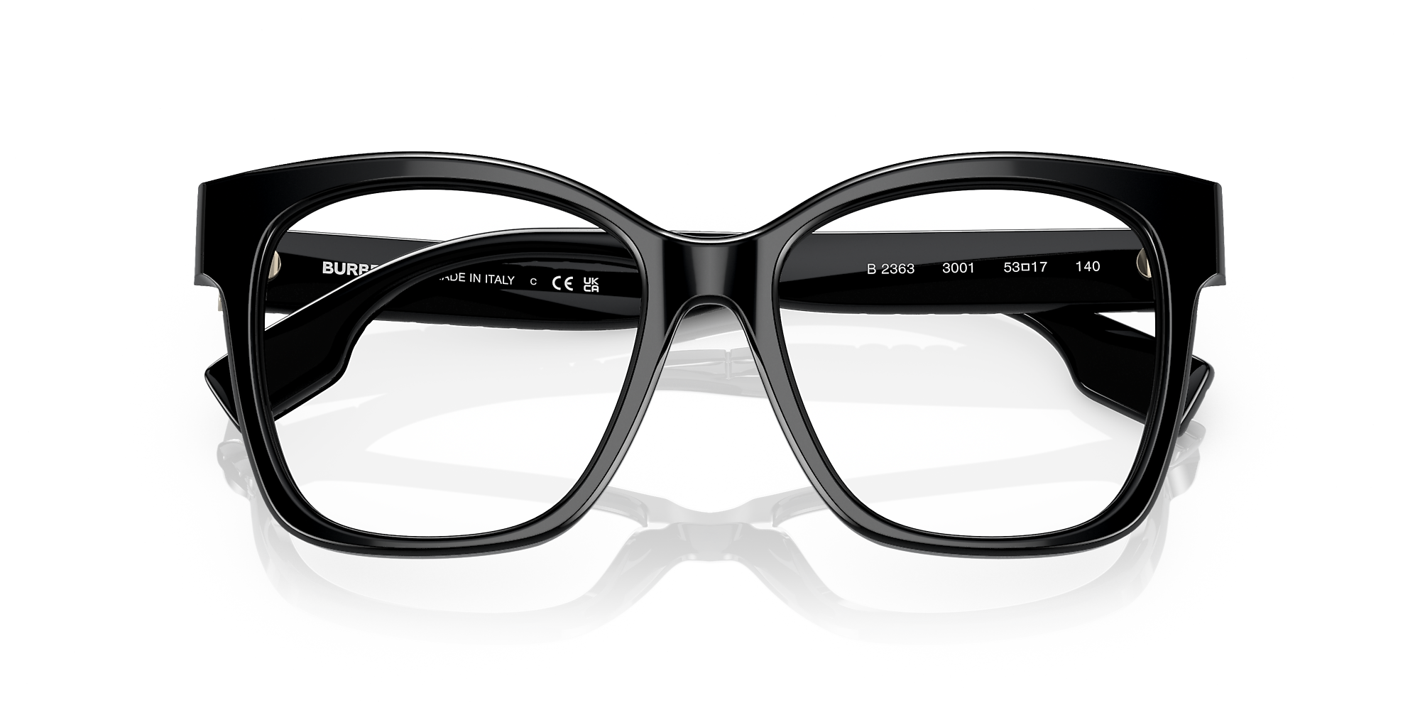Elevate your style quotient with Burberry Sylvie eyeglasses. These square-shaped frames are crafted from durable acetate, offering a comfortable and stylish fit. The polished black finish adds a touch of sophistication to any look. These glasses are not just a fashion statement but also a practical accessory for everyday wear. Available with prescription lenses.