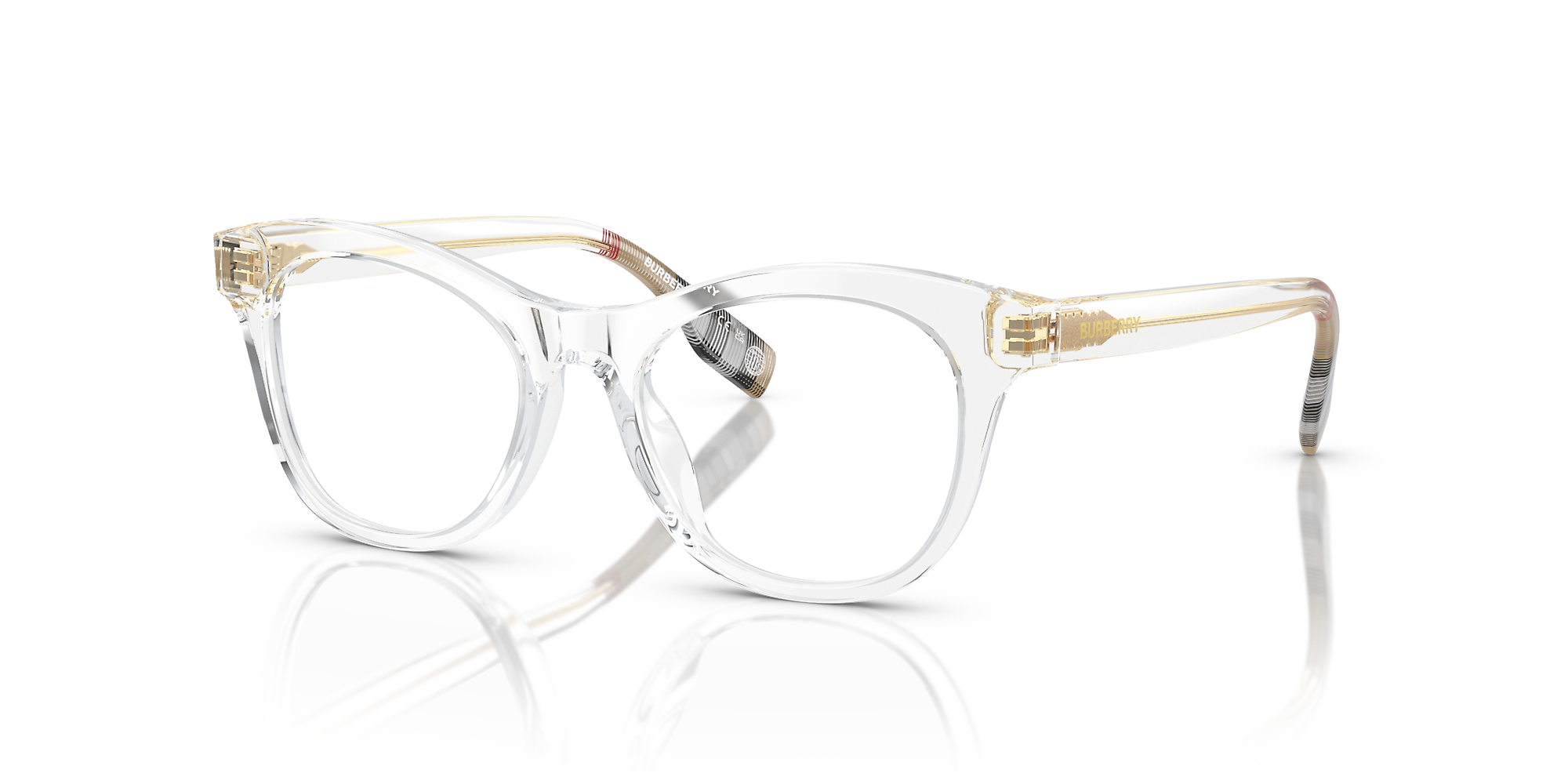 Introducing Burberry JB2007 Kids eyeglasses, a perfect blend of style and comfort for your little ones. Crafted from durable acetate, these glasses feature a cat eye shape that adds a touch of sophistication to any outfit. The frame is polished in a transparent vintage check color, offering a unique look that your kids will love. These eyeglasses are not just stylish but also practical.