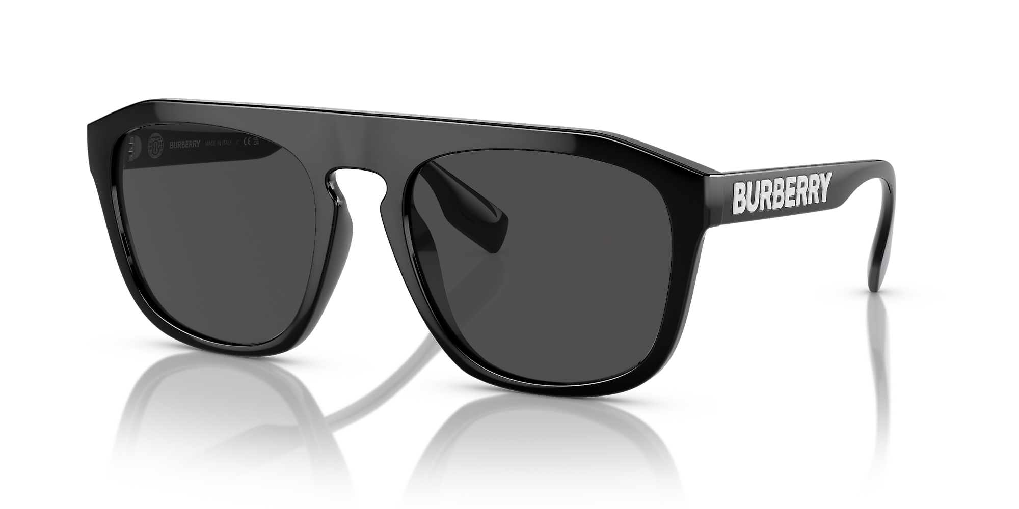 Elevate your fashion quotient with Burberry Wren sunglasses. The square shape and polished black frame offer a timeless appeal, while the dark grey lenses with solid color treatment provide excellent protection from the sun's glare. The key bridge adds a touch of sophistication to this stylish design. These shades are not only fashionable but also versatile. Available with prescription lenses.