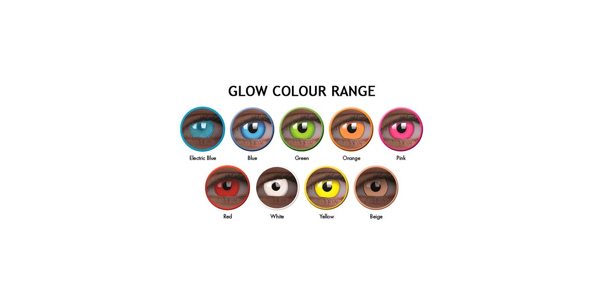 UV illumination effect. UV Glow range lenses make your eyes sparkle and glow in the dark under night club light. Glow lenses are the only lenses in the market which use effective glow inks that react under UV light, making for a glowing night out in any night club. The plain bright glow colours also look great without UV activation or in daylight.