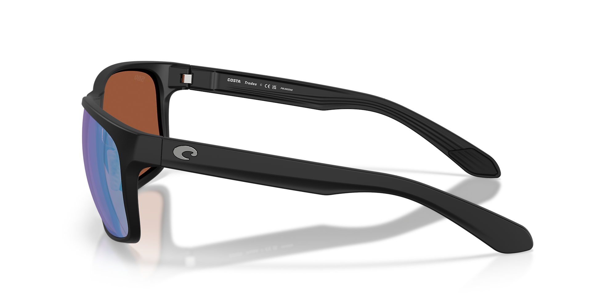 Experience the ideal blend of style and performance with Costa Trades. These square-shaped glasses feature a matte black frame that is as durable as it is stylish. The green mirror polarized lenses not only provide excellent glare reduction, but also enhance color contrast for superior visibility. The solid color mirror treatment on the lenses adds a touch of sophistication to these shades. Whether you're fishing or enjoying a day at the beach, these Costa Trades will keep you looking cool while providing optimal protection and comfort.