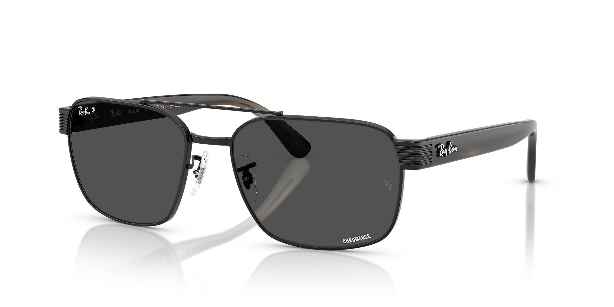 Ray-Ban RB3751CH Chromance Sun glasses redefine the standards of excellence. The polished black metal frame, paired with polarized lenses in a polarized dark grey color finish, provides superior glare reduction and color intensity. Featuring a square shape, these shades offers a modern and sophisticated look. The chromance lenses enhances contrast and clarity for an optimal visual experience. Available with prescription lenses.