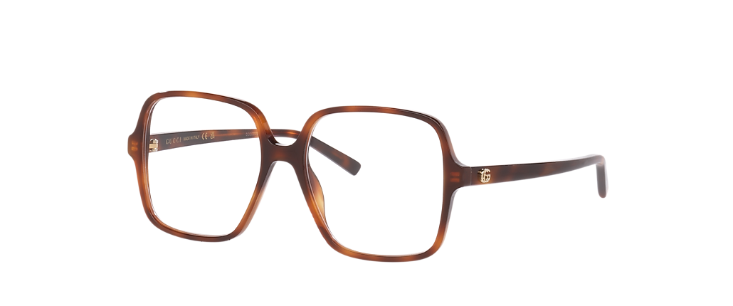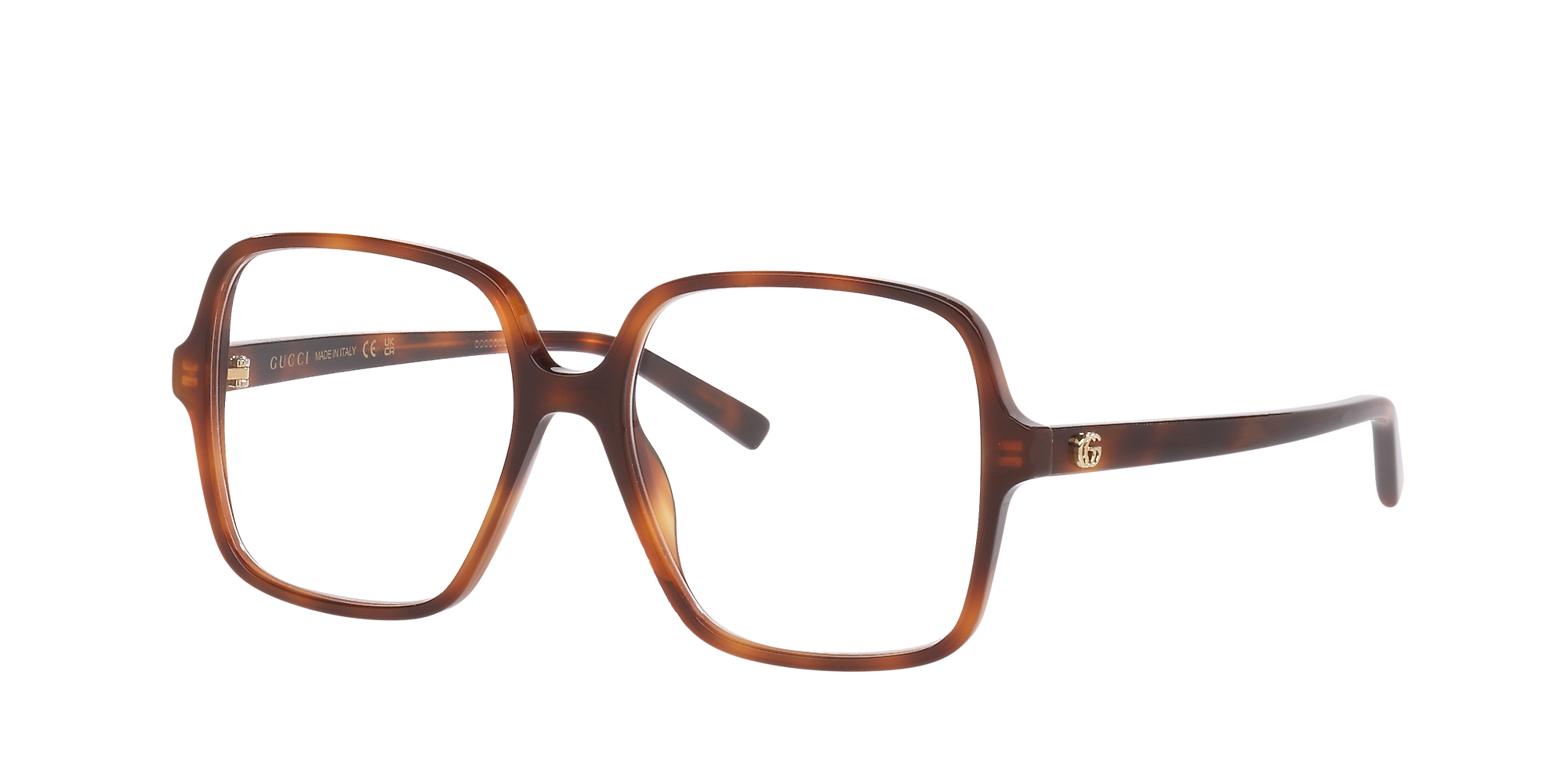 The Gucci GG1994O optical glasses feature rectangular frames crafted from acetate for a sleek and polished look. Designed in a classic tortoise hue, these Gucci glasses deliver a timeless sophistication. Lightweight acetate temples ensure lasting comfort, making these tortoise glasses an elegant and practical choice for daily wear.