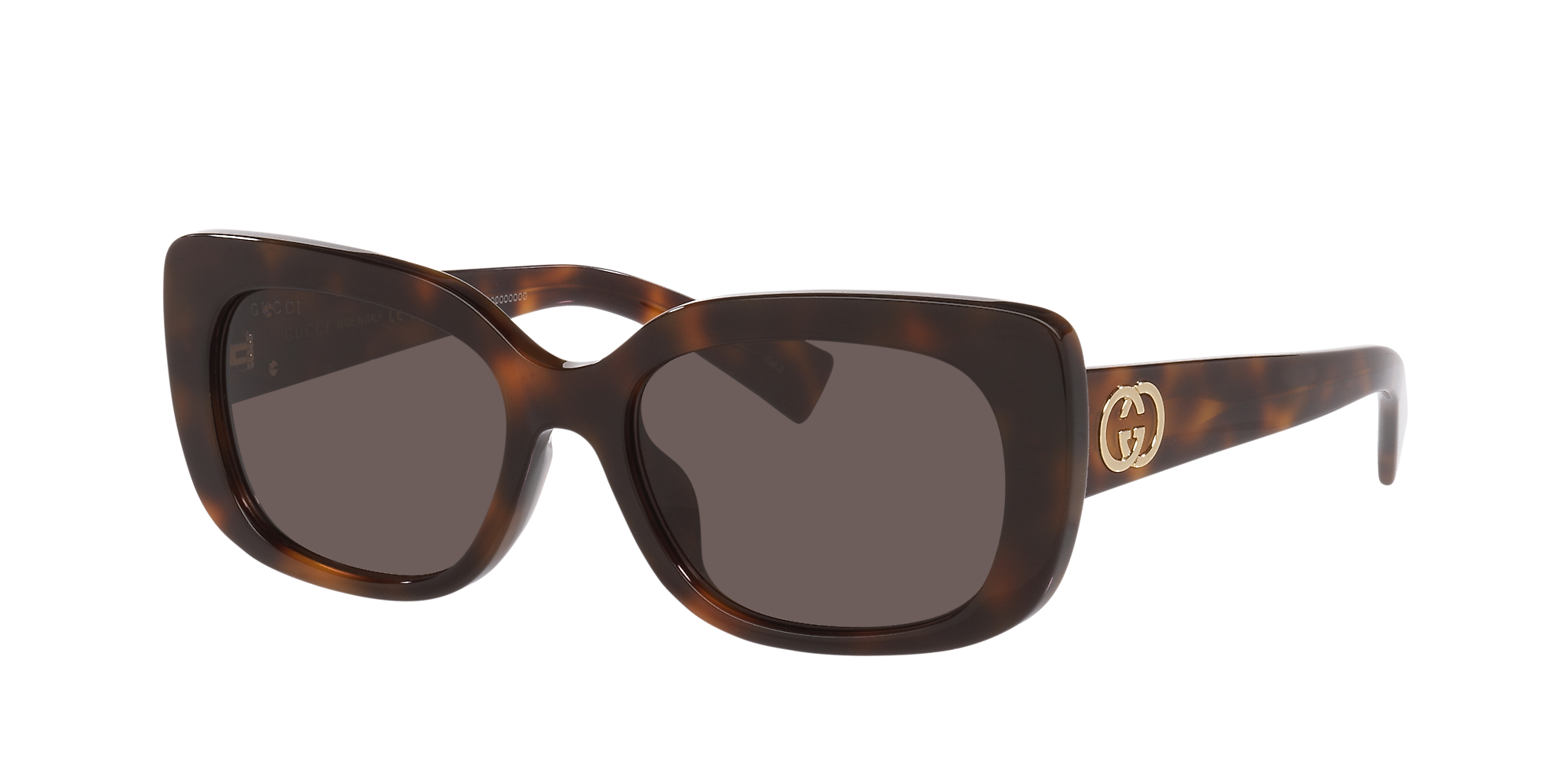 The Gucci GG1979SK sunglasses bring effortless sophistication to any look. Crafted from acetate, the rectangular frames feature a tortoise front for timeless appeal. Grey classic lenses offer advanced UVA/UVB protection. Designed with a low bridge fit, these Gucci sunglasses combine elegance and comfort in perfect harmony.