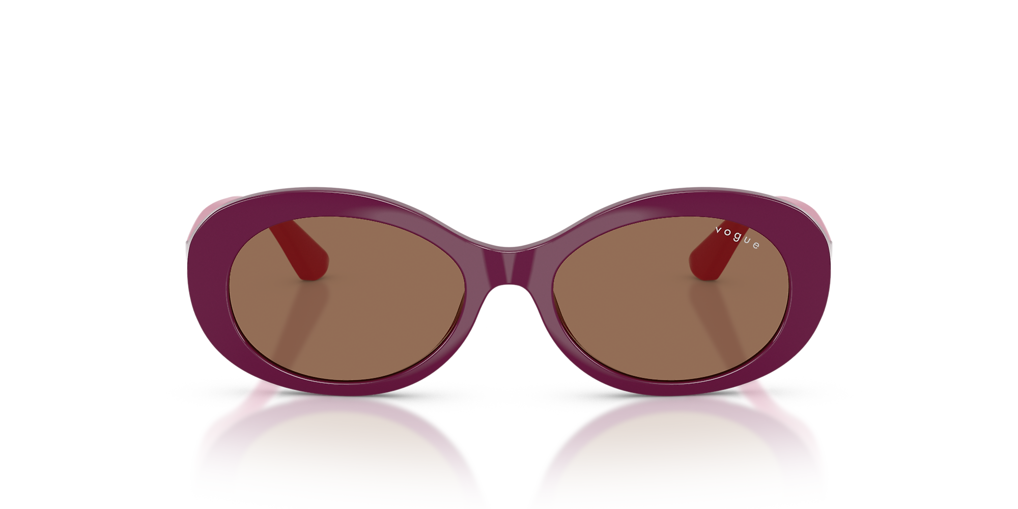 Elevate your style quotient with Vogue Eyewear VJ2032. Crafted in a polished full purple frame, these oval-shaped glasses offer a modern and sophisticated look. The solid dark brown lenses not only provide excellent protection but also add a touch of elegance to the overall design. These shades are as practical as they are fashionable, making them an ideal accessory for any outfit.