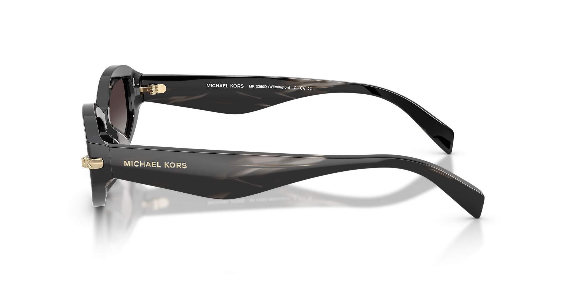 Elevate your style quotient with Michael Kors Wilmington sunglasses. The oval shape and polished black horn frame color give these shades a timeless appeal. Crafted from durable acetate, the frame is designed to withstand regular wear and tear. The light grey gradient lenses offer a stylish touch while providing optimal vision coverage. These sunnies are a versatile choice for everyday wear.