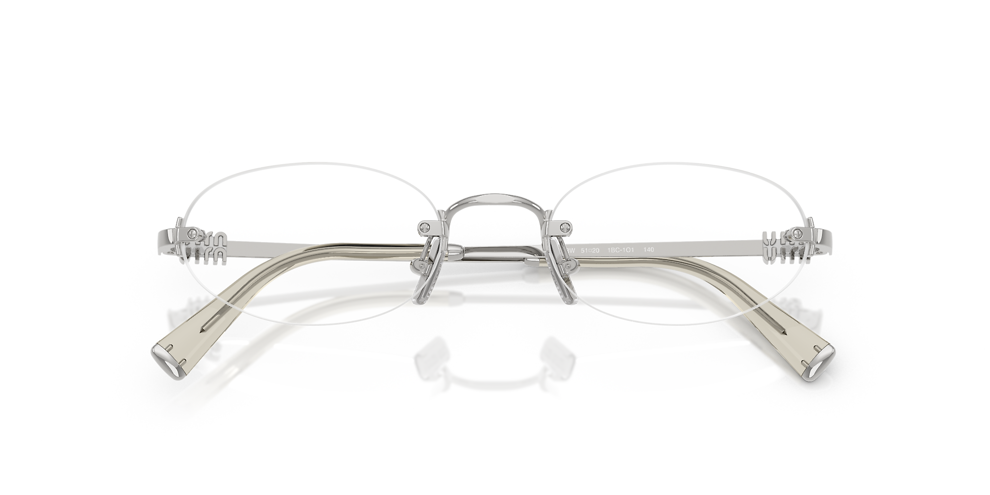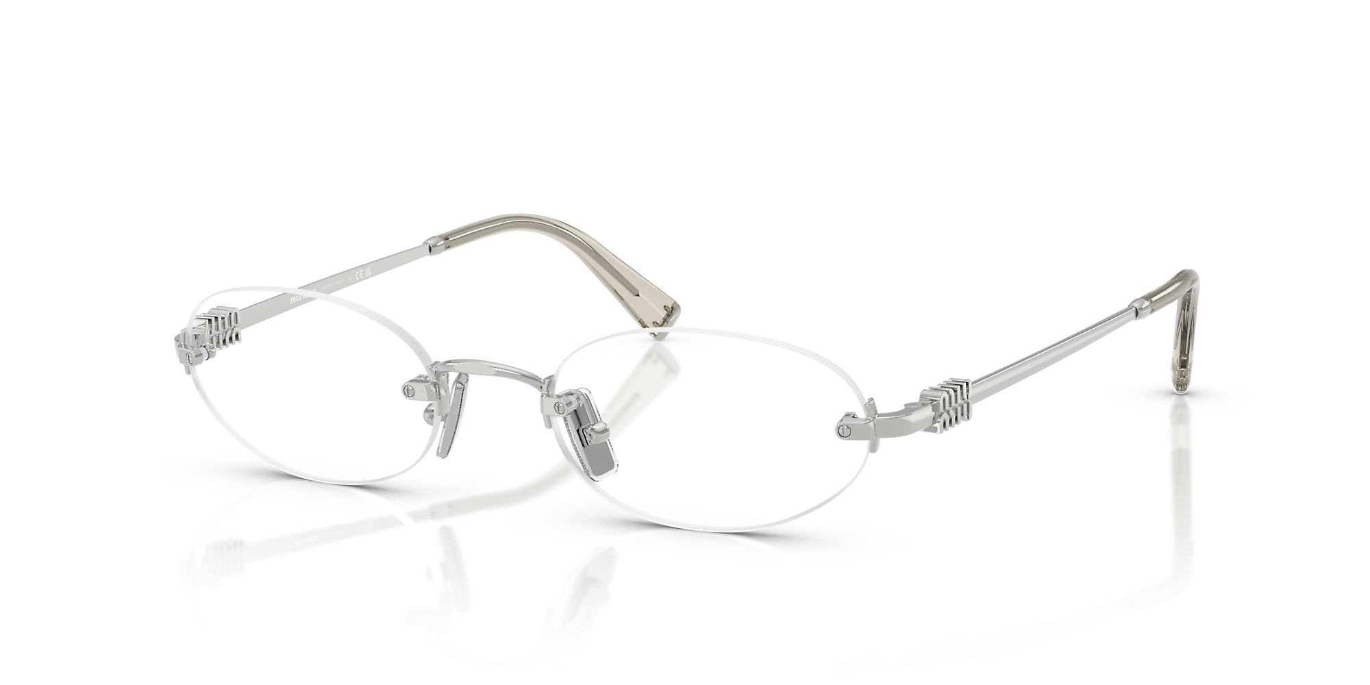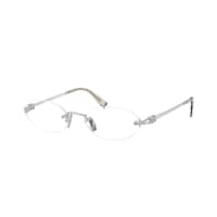 Embrace the unique blend of style and comfort with Miu Miu MU 53WV eyeglasses. These oval-shaped frames, crafted from durable metal, are polished to a high shine for a sleek look. The silver color adds a touch of sophistication, making these glasses a versatile choice for everyday wear. The solid color lenses ensures optimal vision clarity while adding a stylish twist to your look. Available with prescription lenses.