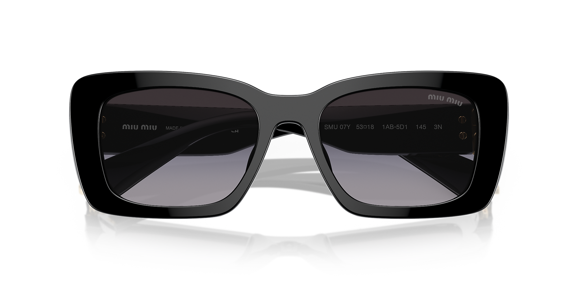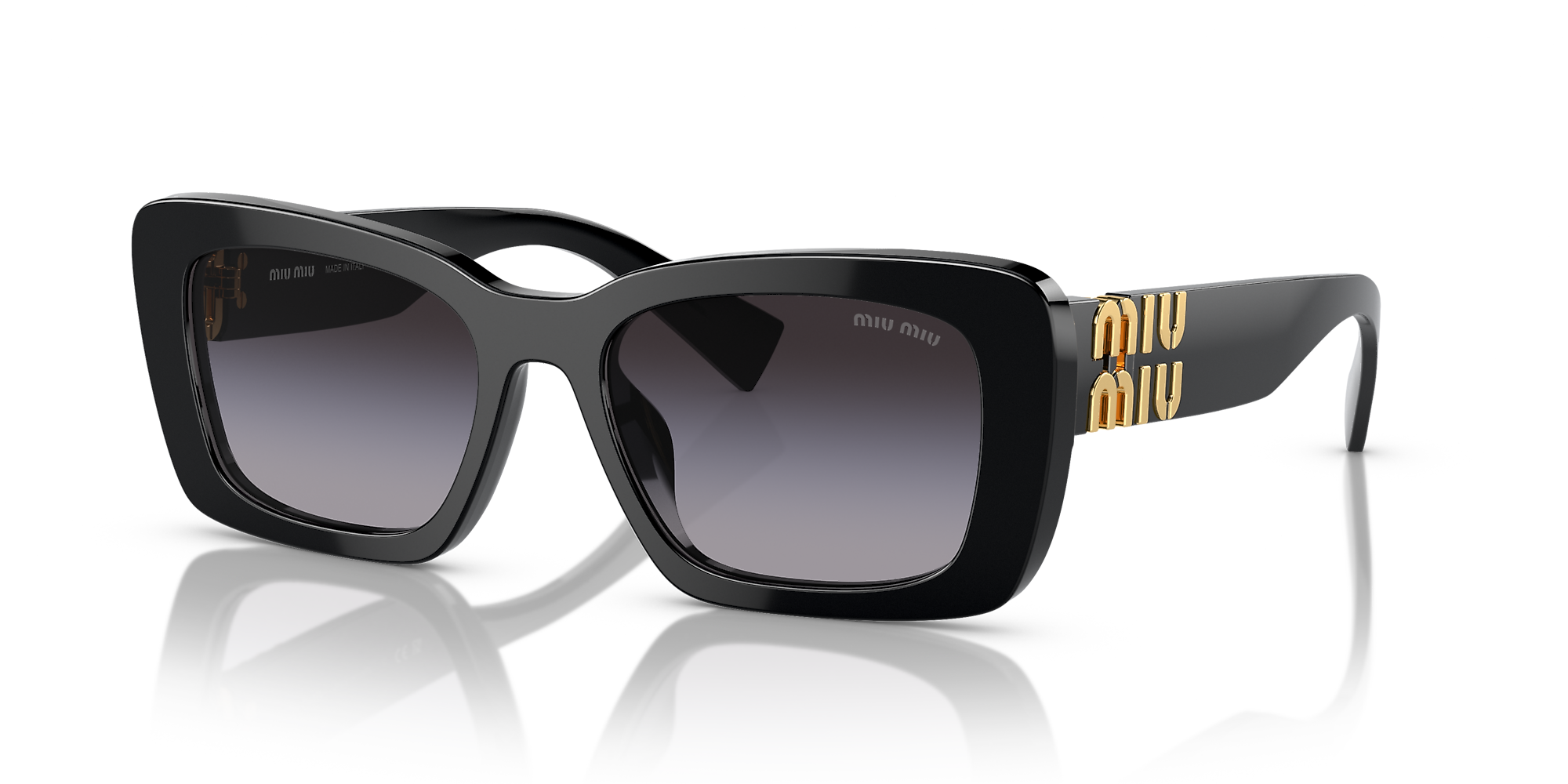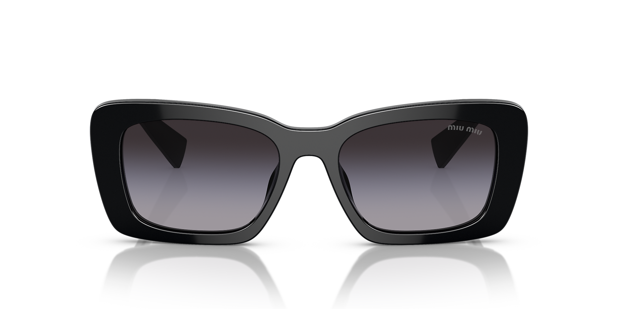 Elevate your style quotient with Miu Miu MU 07YS sunglasses. These rectangle-shaped glasses features a polished black frame made of durable acetate. The gradient grey lenses add a touch of sophistication and provide excellent protection against the sun's harmful rays. Embrace the timeless elegance and sophistication of these shades.