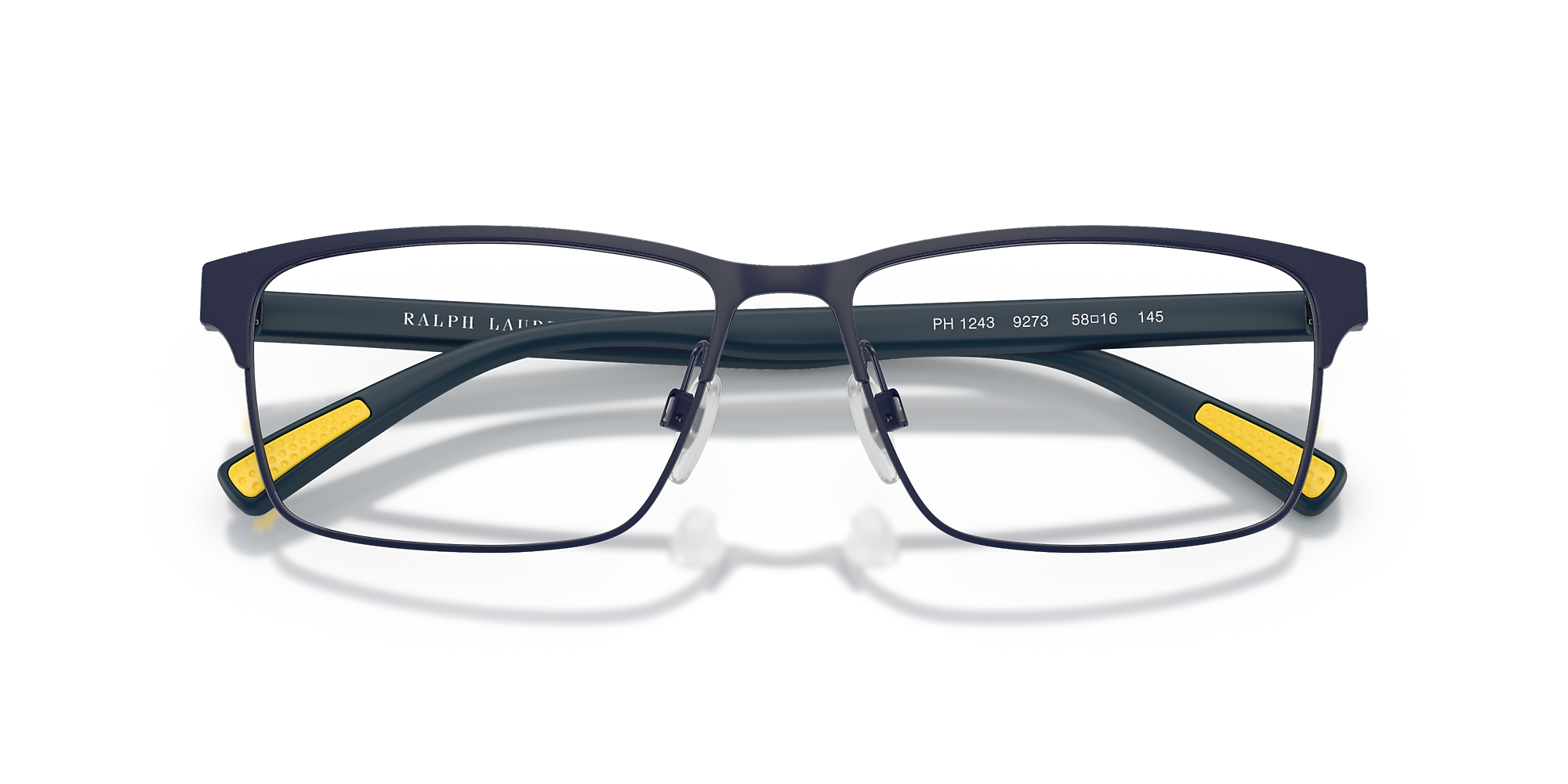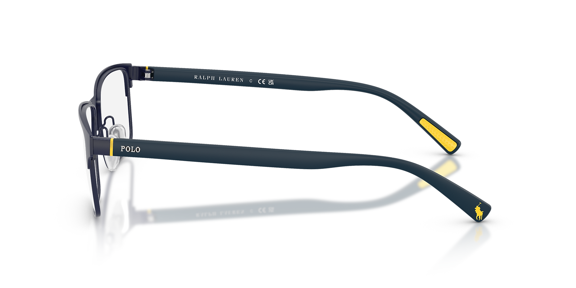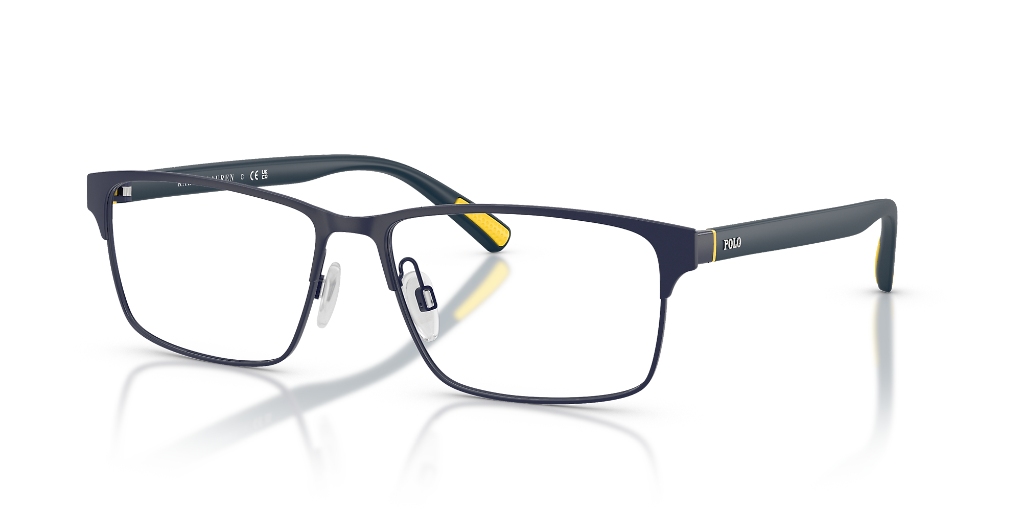 Elevate your style with Polo Ralph Lauren PH1243 eyeglasses in the striking frame color of semishiny navy blue. These rectangle-shaped frames are crafted from durable metal, offering a lightweight and comfortable fit. The polished finish adds a touch of sophistication to any outfit. Embrace the timeless appeal of these designer glasses.