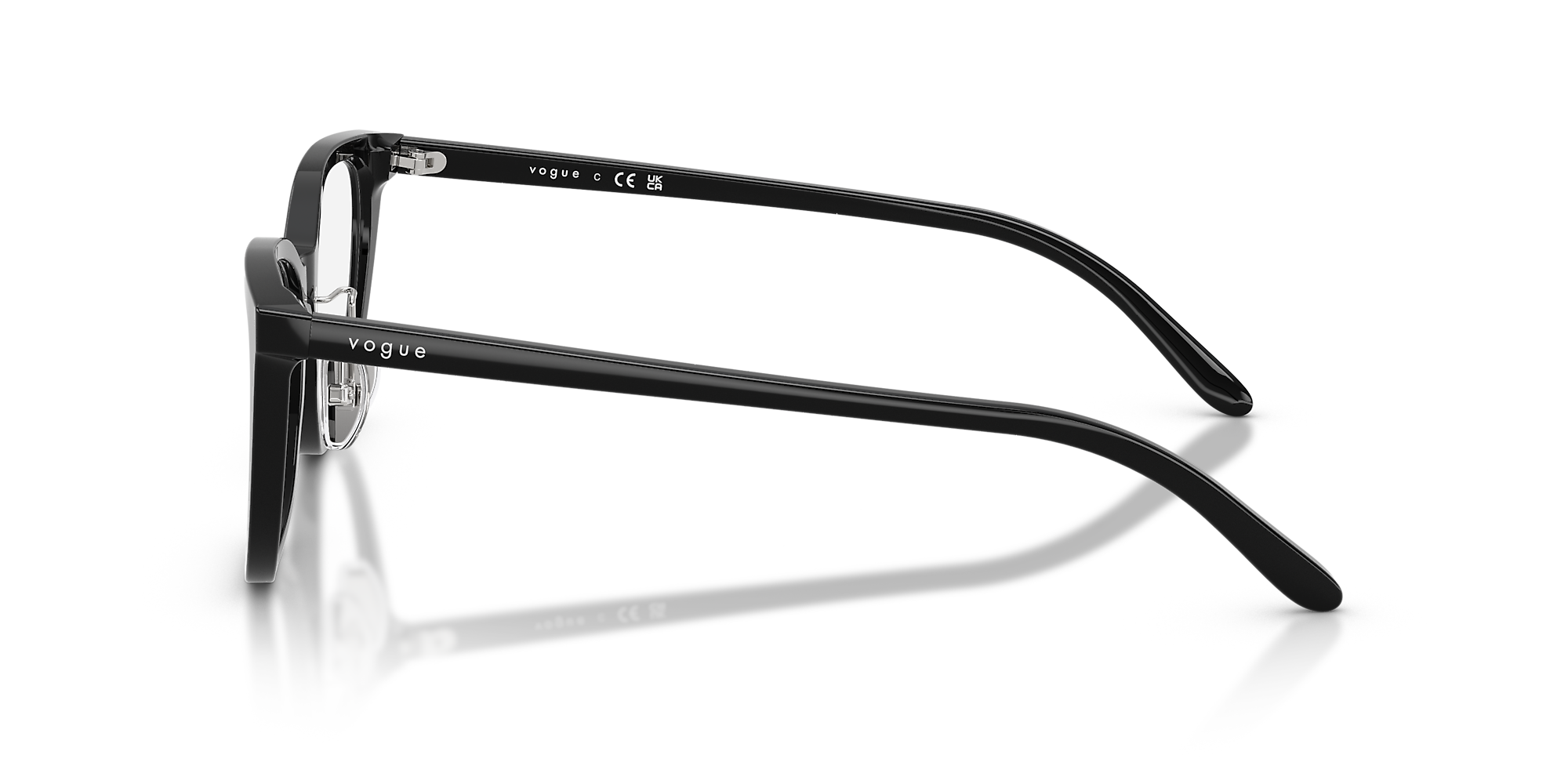 Elevate your fashion quotient while wearing Vogue Eyewear VO5685D eyeglasses. The cat-eye shape and polished black frame, crafted from durable acetate, exude a timeless appeal. These frames also feature a unique design detail on the temples that adds a touch of glamour to your look. With these glasses, you can enjoy both style and functionality.