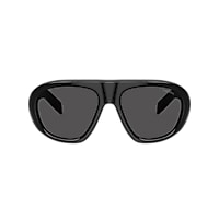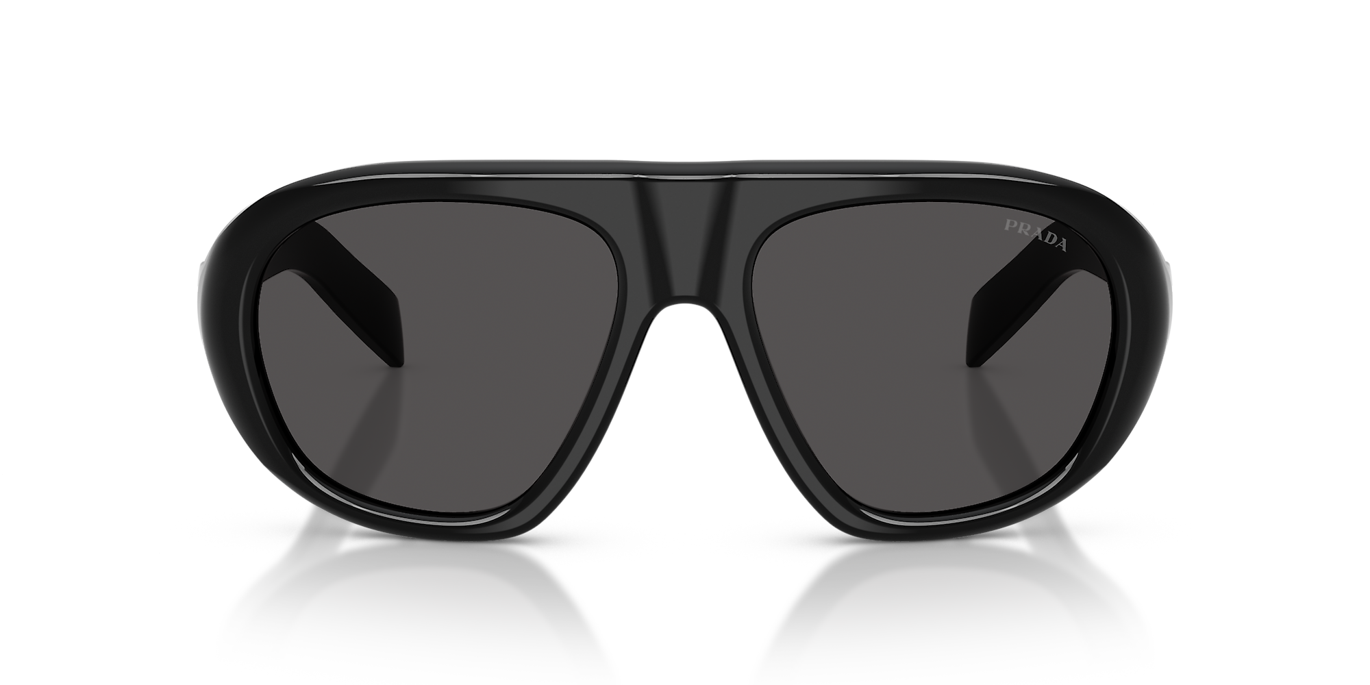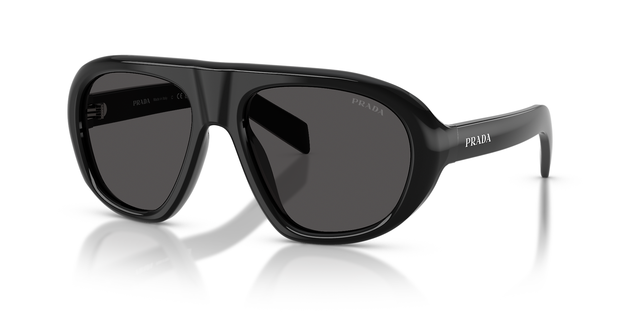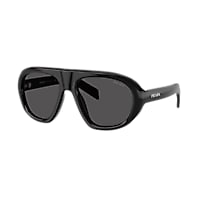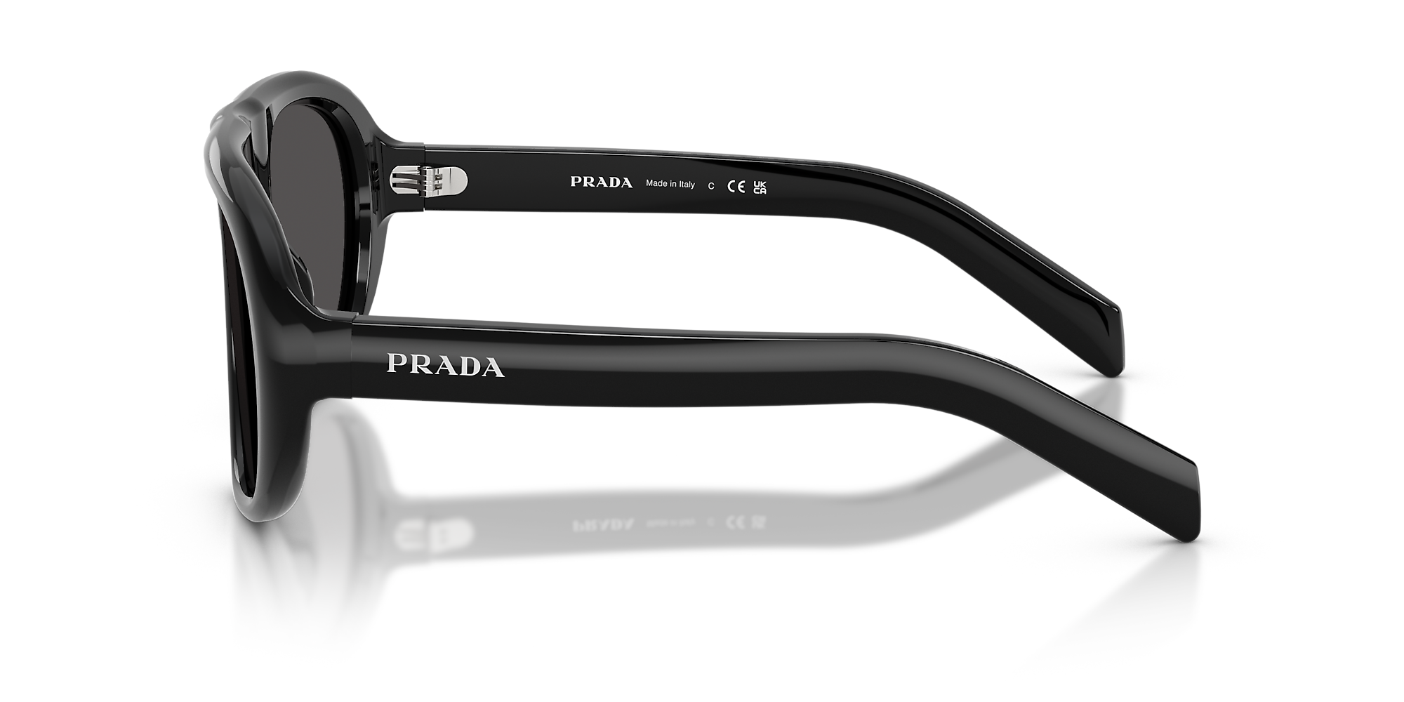 Elevate your fashion with these Prada PR C05SF sunglasses. The irregular shape and polished black acetate frame provide a unique and stylish look. The solid color dark grey lenses add a touch of sophistication, while the lenses ensures optimal protection from the sun's harmful rays. These shades are a must-have accessory for all trendsetters.
