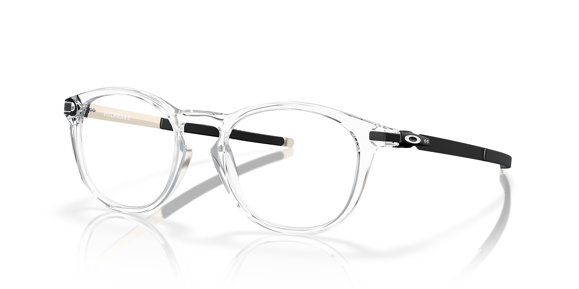 Experience the perfect blend of style and performance with Oakley Pitchman™ R eyeglasses. The round shape and polished finish create a timeless look, while the o matter frame material ensures durability and comfort. These glasses offer a unique twist on a traditional design, featuring a key bridge for added style. With their clear frame color, these frames are versatile enough to suit any outfit or occasion. Available with prescription lenses.