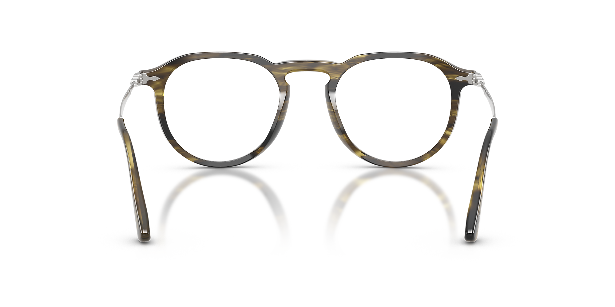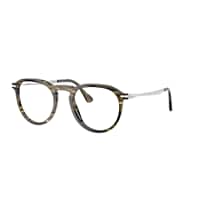 Experience the perfect synergy of style and optical utility with Persol Pier. These pillow-shaped glasses feature a unique striped black and olive green frame crafted from high-quality acetate, known for its durability and flexibility. The polished finish adds a touch of sophistication to the design. These frames also feature a keyhole bridge, offering an extra level of comfort and convenience. Embrace unbridled creativity with these distinctive shades from Persol.