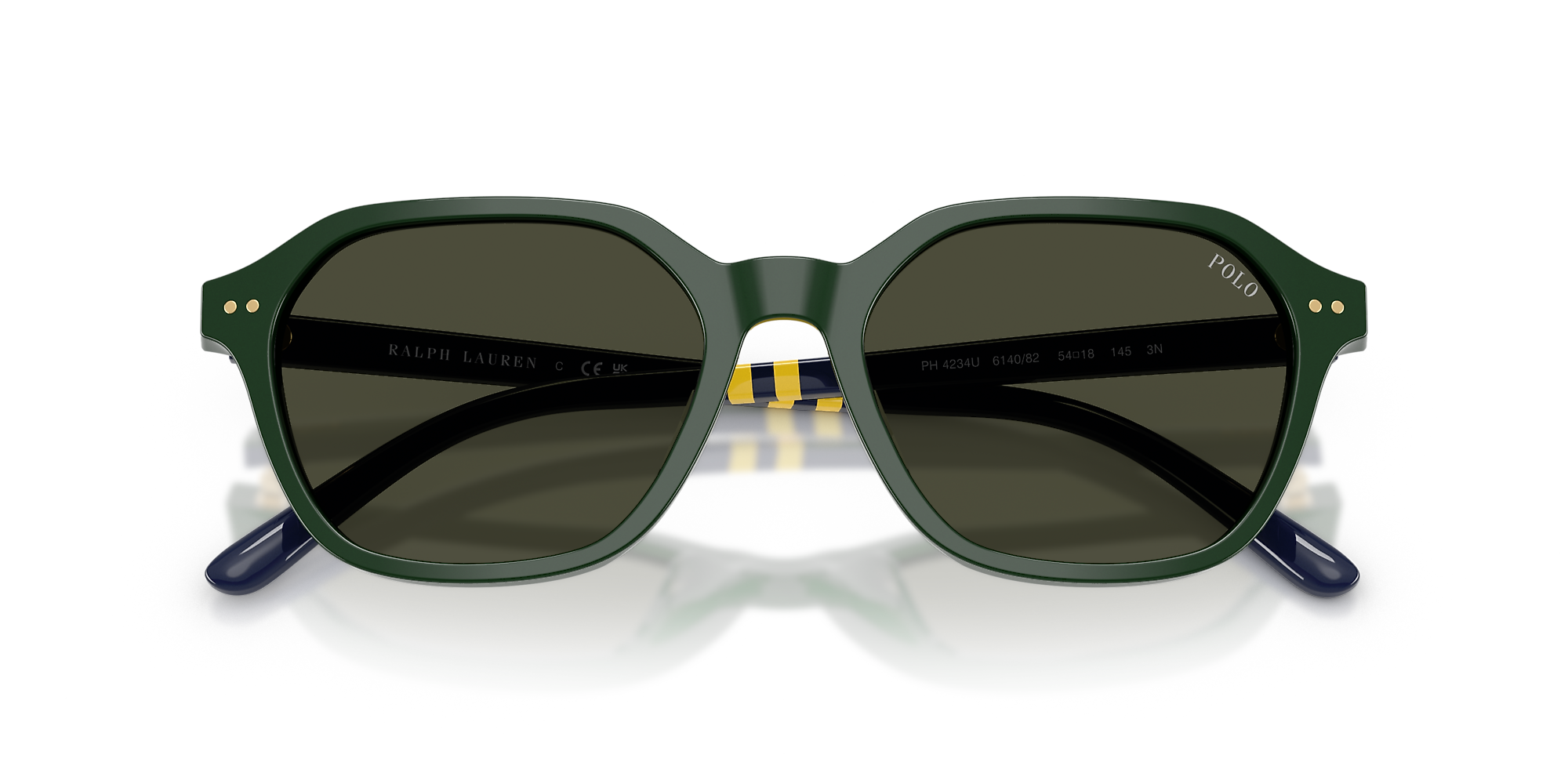 Elevate your fashion and optical standards with Polo Ralph Lauren PH4234U. Crafted from durable acetate, these glasses feature an irregular shape that adds a unique touch to your look. The polished shiny green frame color is complemented by solid brown lenses, creating a timeless and versatile style. Embrace the power of self-expression with these stylish shades.