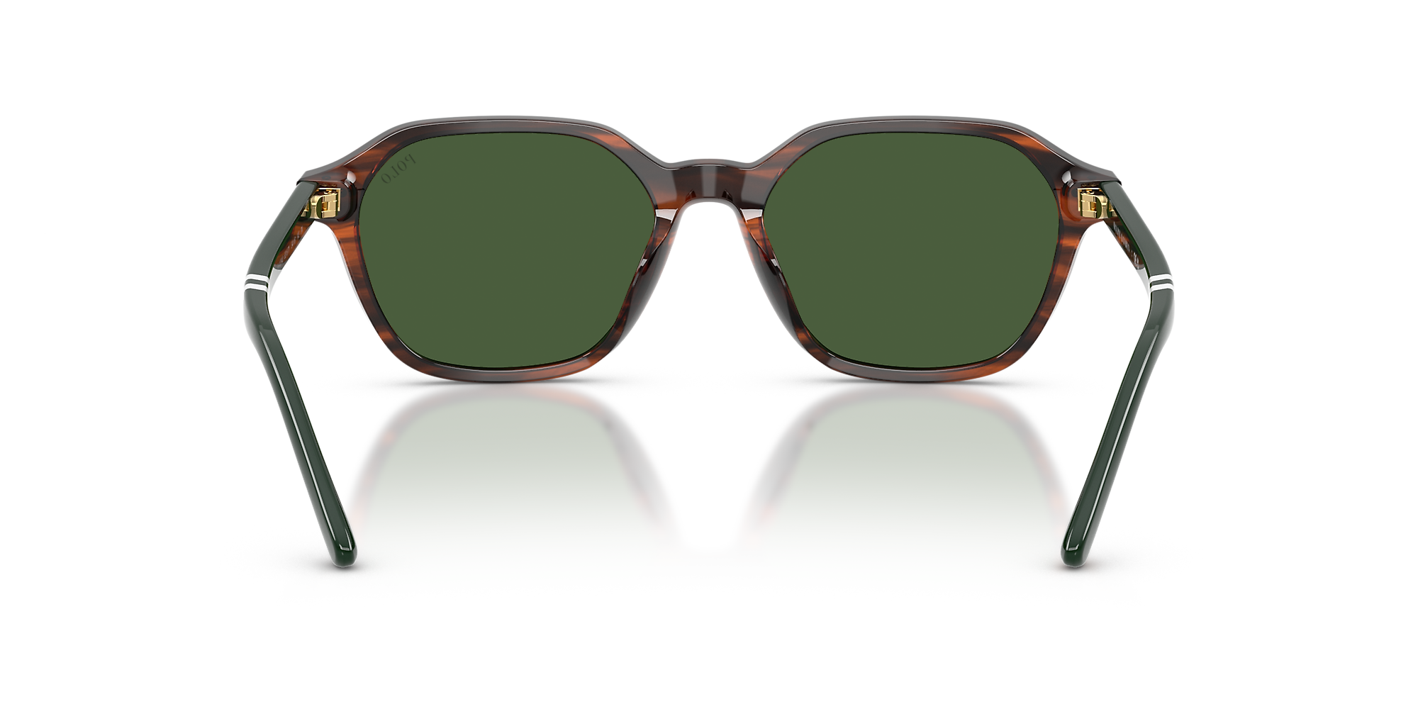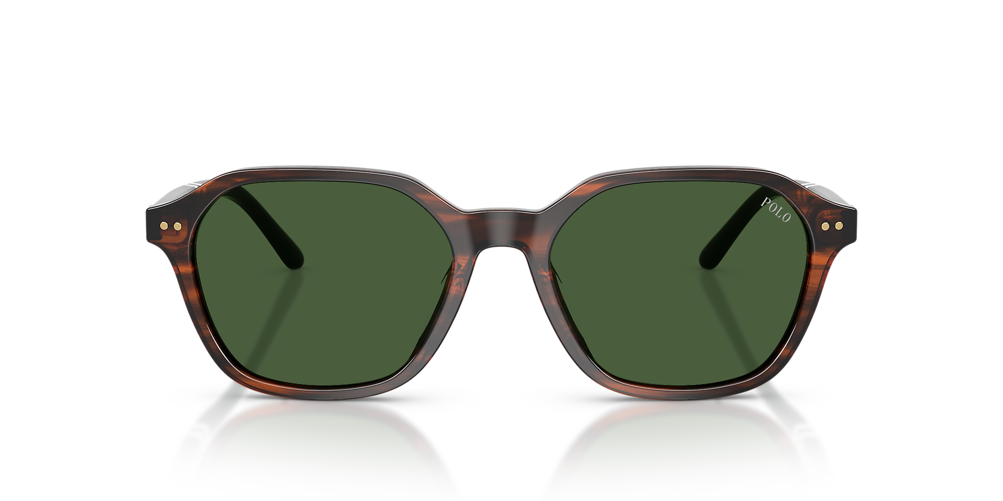 Elevate your fashion and optical standards with Polo Ralph Lauren PH4234U. These irregular-shaped glasses feature a polished, shiny striped brown acetate frame that adds a touch of sophistication to any outfit. The solid color treatment on the bottle green lenses provides excellent vision clarity and protection. Embrace your unique style with these trendy yet functional frames.