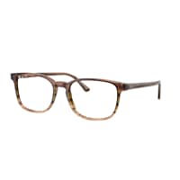 Introducing the Ray-Ban RB5418 Optics, a pair of eyeglasses that exude a sophisticated and modern look. The pillow shape and key bridge design give these glasses a unique and trendy style. Crafted from high-quality acetate, the frame is durable and comfortable to wear. The polished finish in striped brown & green adds a touch of elegance to these eyeglasses.