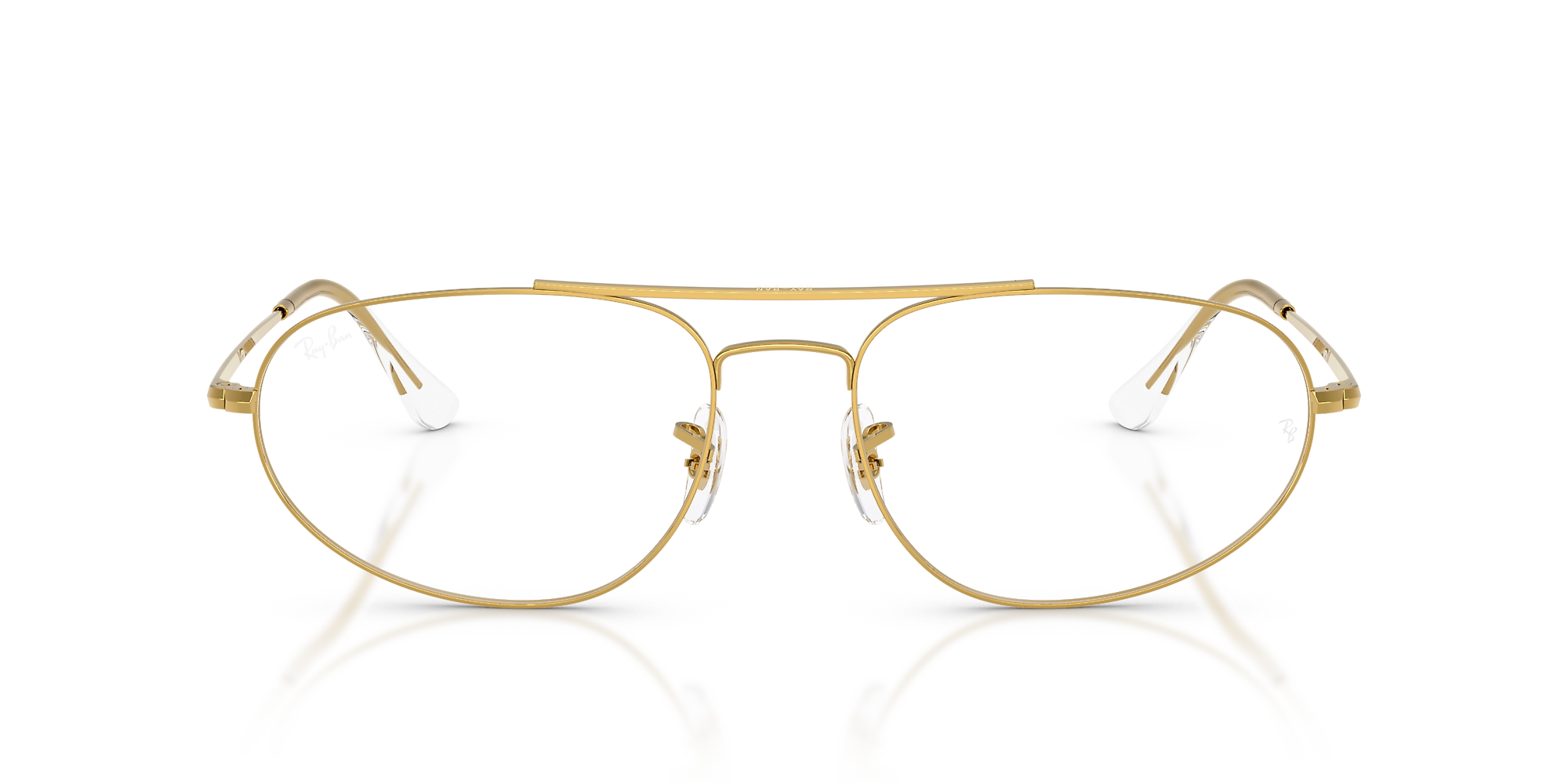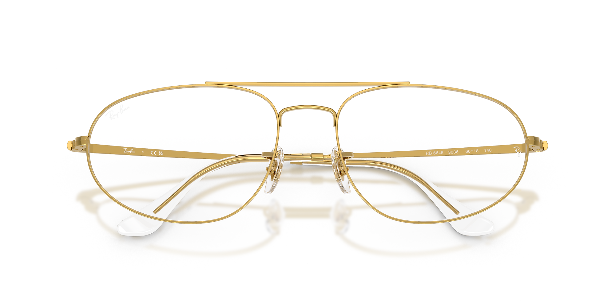 Enhance your appearance with Ray-Ban RB6645 eyeglasses. The frame's unconventional shape brings a distinctive element to your style, enhanced by the sleek legend gold metal finish for a touch of class. The transparent lenses offers a flexible option for a more understated appearance, or simply replace them with your preferred lenses. These glasses are versatile enough to complement any outfit and perfect for any event.