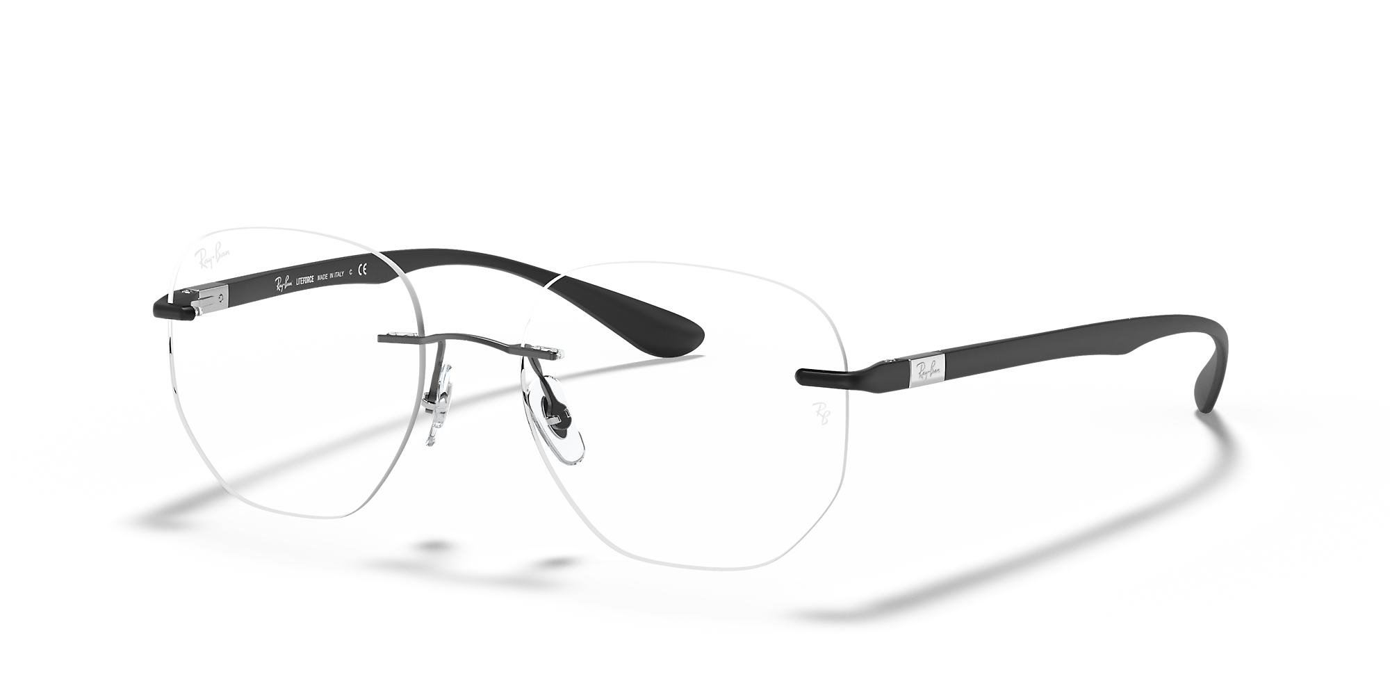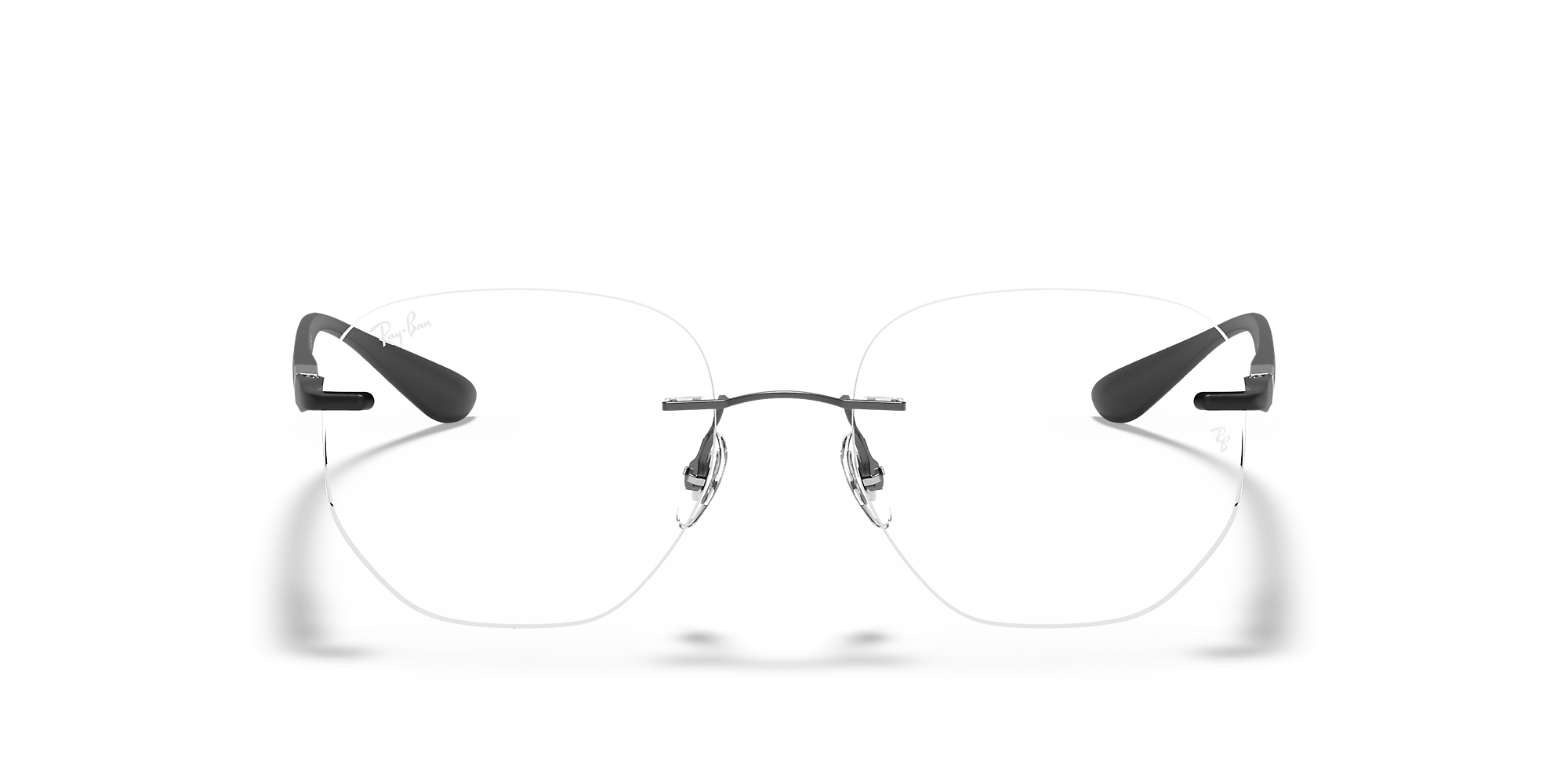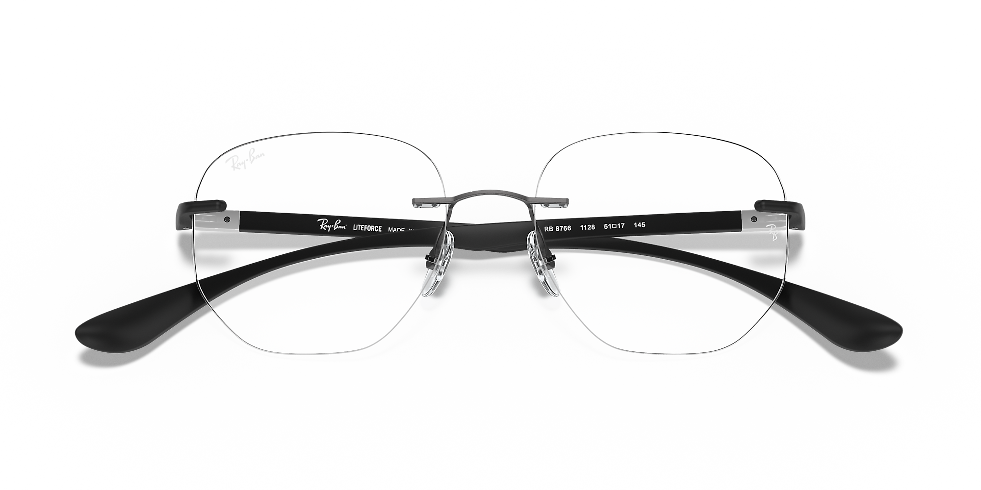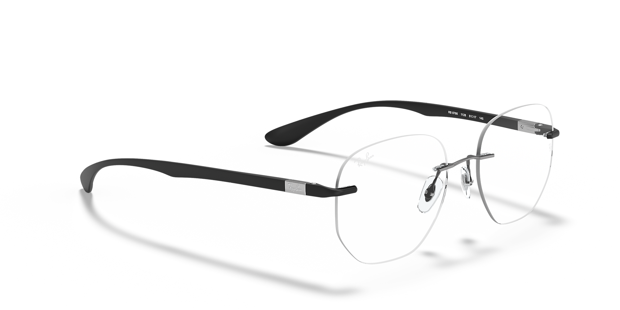 Elevate your fashion as well as optical standards with Ray-Ban RB8766 Optics. The titanium frame is designed in an irregular shape, offering a unique and modern look. The matte finish in a gunmetal color adds a touch of sophistication to the eyeglasses. These frames are not only stylish but also durable. Available with prescription lenses.