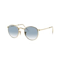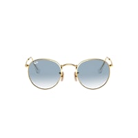 Experience the epitome of style and performance integration with Ray-Ban Round Flat Lenses. These sunglasses feature a polished gold metal frame in a round shape, offering a timeless look. The light blue gradient lenses add a touch of sophistication to the design, making these glasses an ideal accessory for any fashion-forward individual.