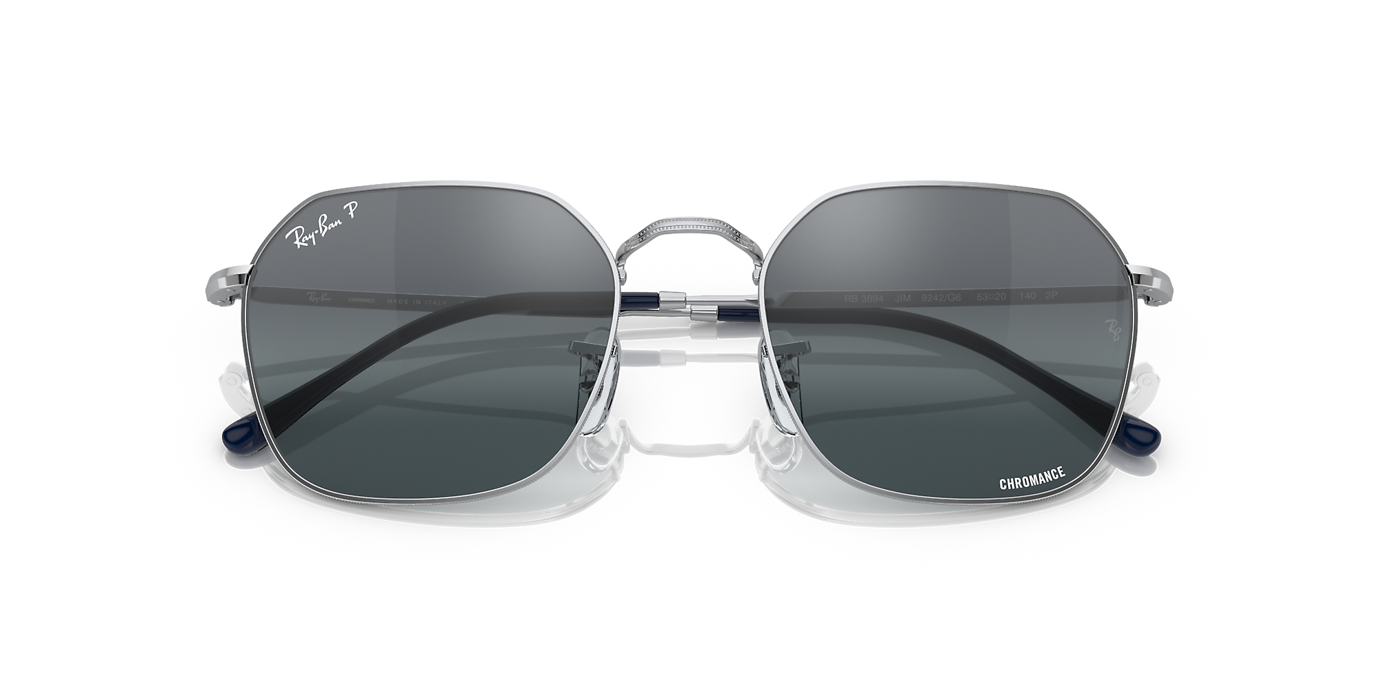 Ray-Ban Jim sunglasses are a unique and stylish addition to any wardrobe. The irregular shape of the metal frame adds a contemporary touch, while the polished silver finish lends a sophisticated edge. The polarized lenses not only provide excellent glare reduction but also feature chromance technology for superior color enhancement. The silver/blue lens treatment adds a pop of color, making these shades stand out from the crowd.