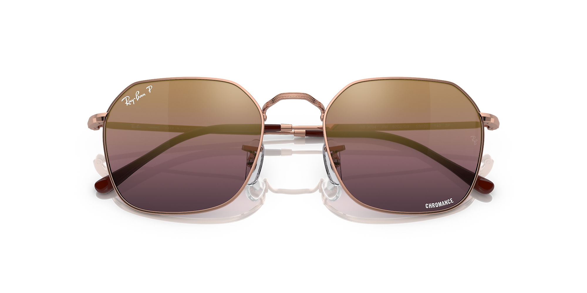 Elevate your fashion and performance standards with Ray-Ban Jim sunglasses. The irregular shape of the metal frame adds a unique touch to your look, while the polished rose gold finish exudes elegance and sophistication. The gold/red polarized lenses feature chromance treatment for enhanced color contrast, giving you a more detailed view of your surroundings. These shades also reduce glare for better vision in bright conditions. With their versatile design and superior quality, Ray-Ban Jim are a must-have accessory for any fashion-forward individual.