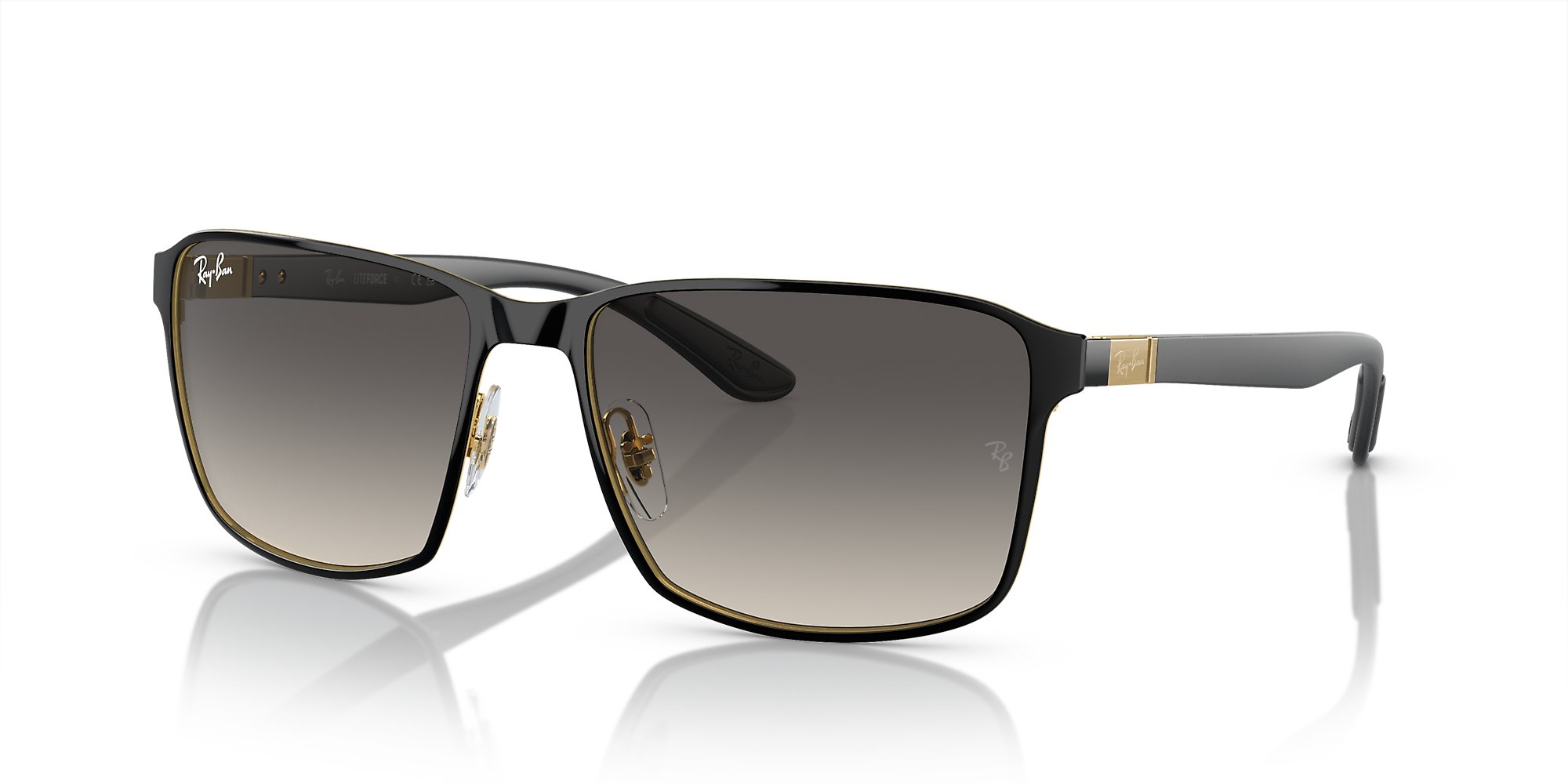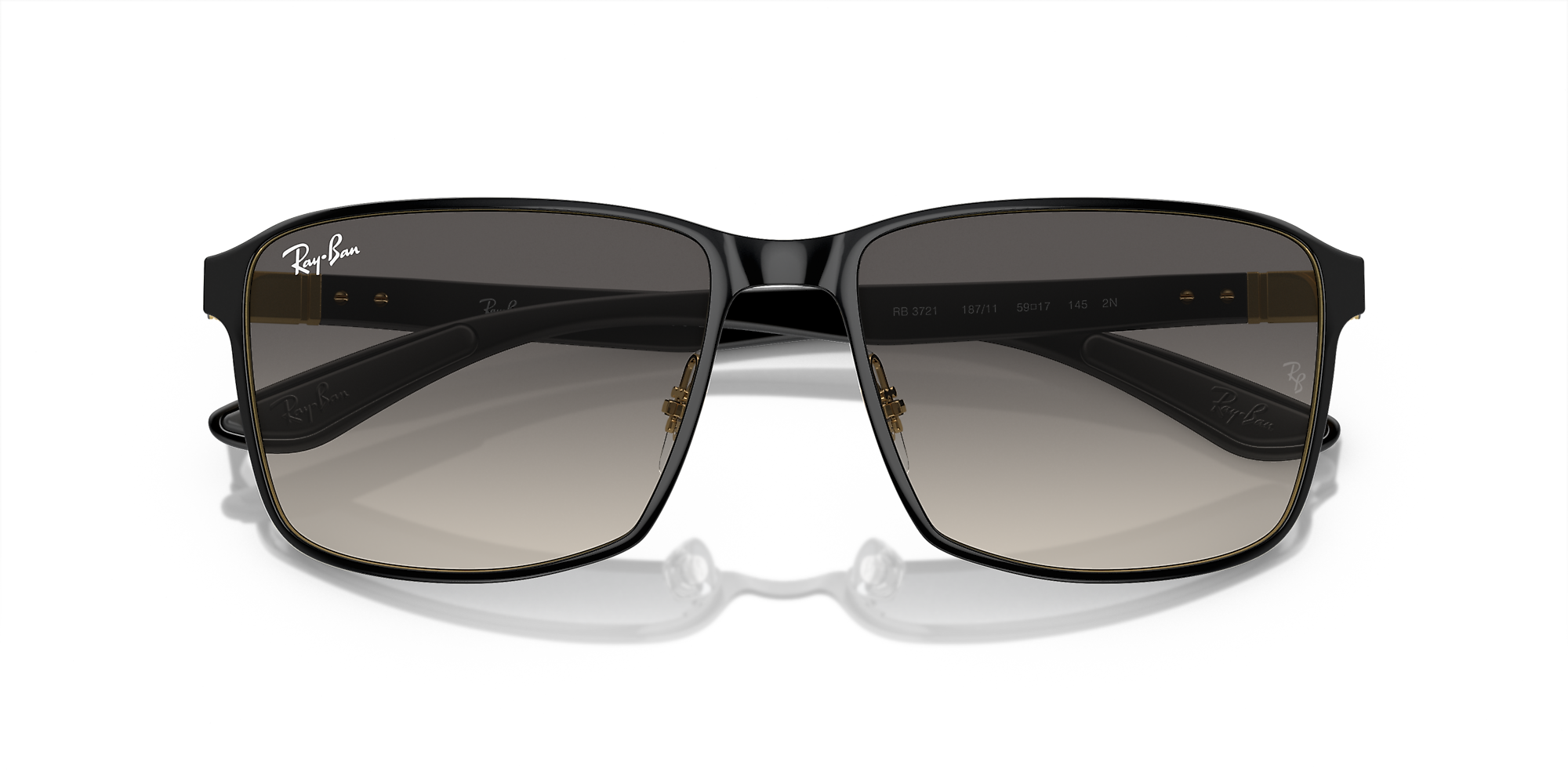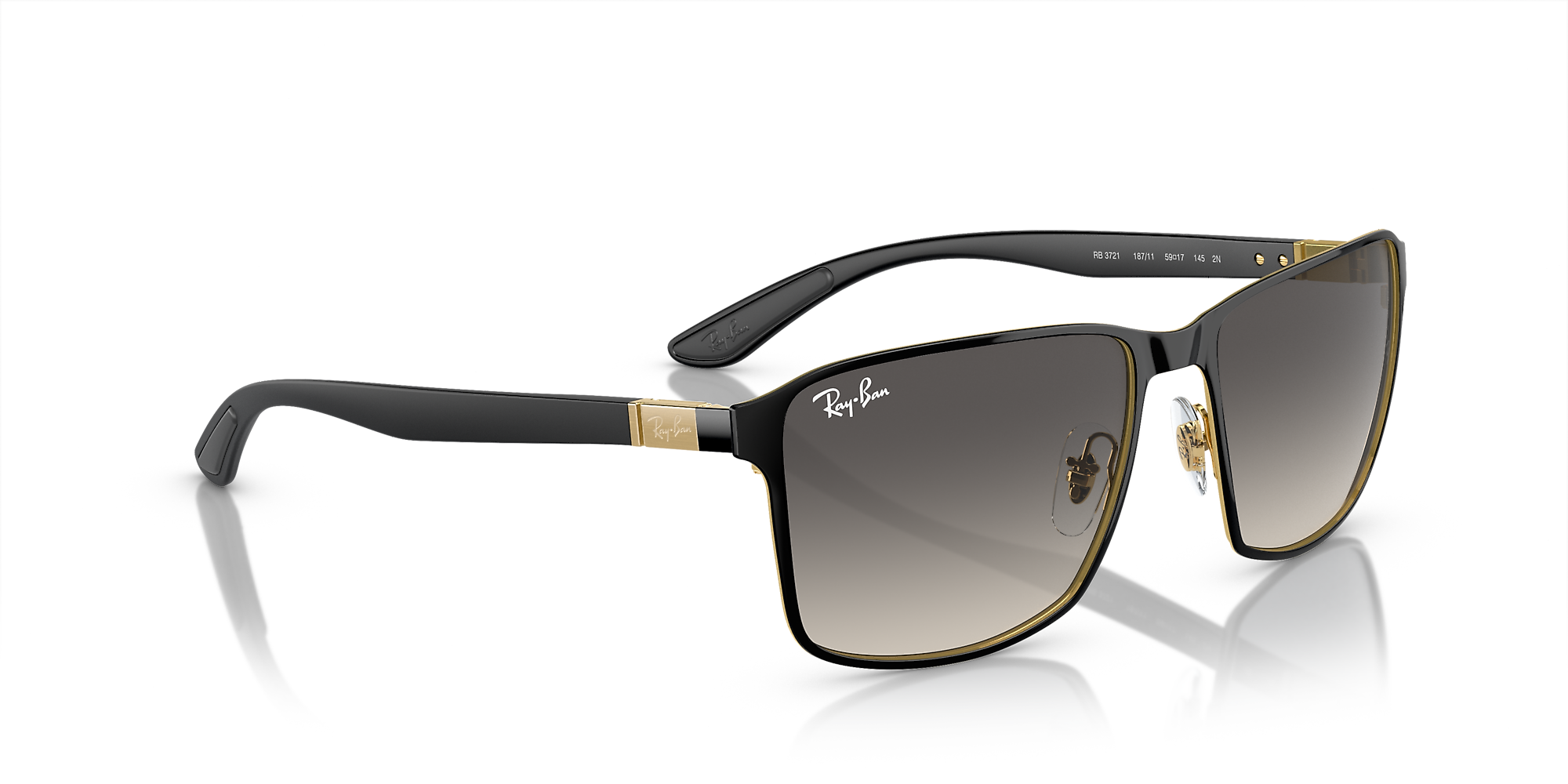 Elevate your style quotient with Ray-Ban RB3721. The square shape and polished black on gold frame, crafted from durable metal, exude a timeless appeal. The gradient grey lenses add a modern twist to the design, while providing excellent protection against the sun's harmful rays. These shades are a versatile choice for those who appreciate both fashion and function. Available with prescription lenses.