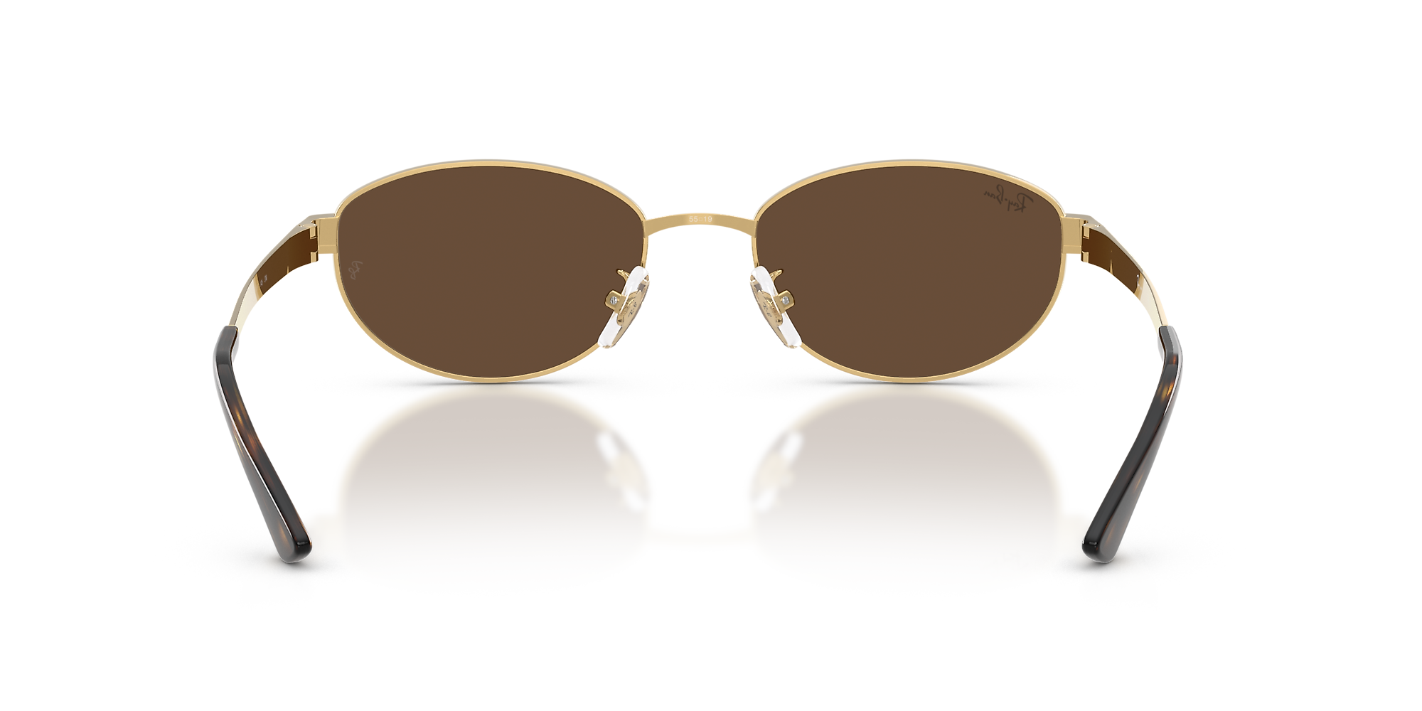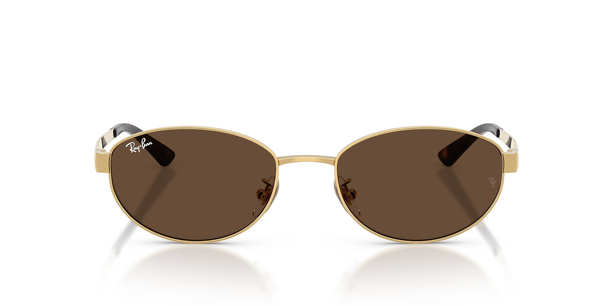 Elevate your style quotient with Ray-Ban RB3774D shades. Designed in an oval shape, these glasses feature a polished arista gold metal frame that exudes elegance and sophistication. The solid dark brown lenses add a touch of mystery to the overall look, while the solid color treatment ensures optimal protection against harmful UV rays. These frames are a versatile choice for everyday wear.
