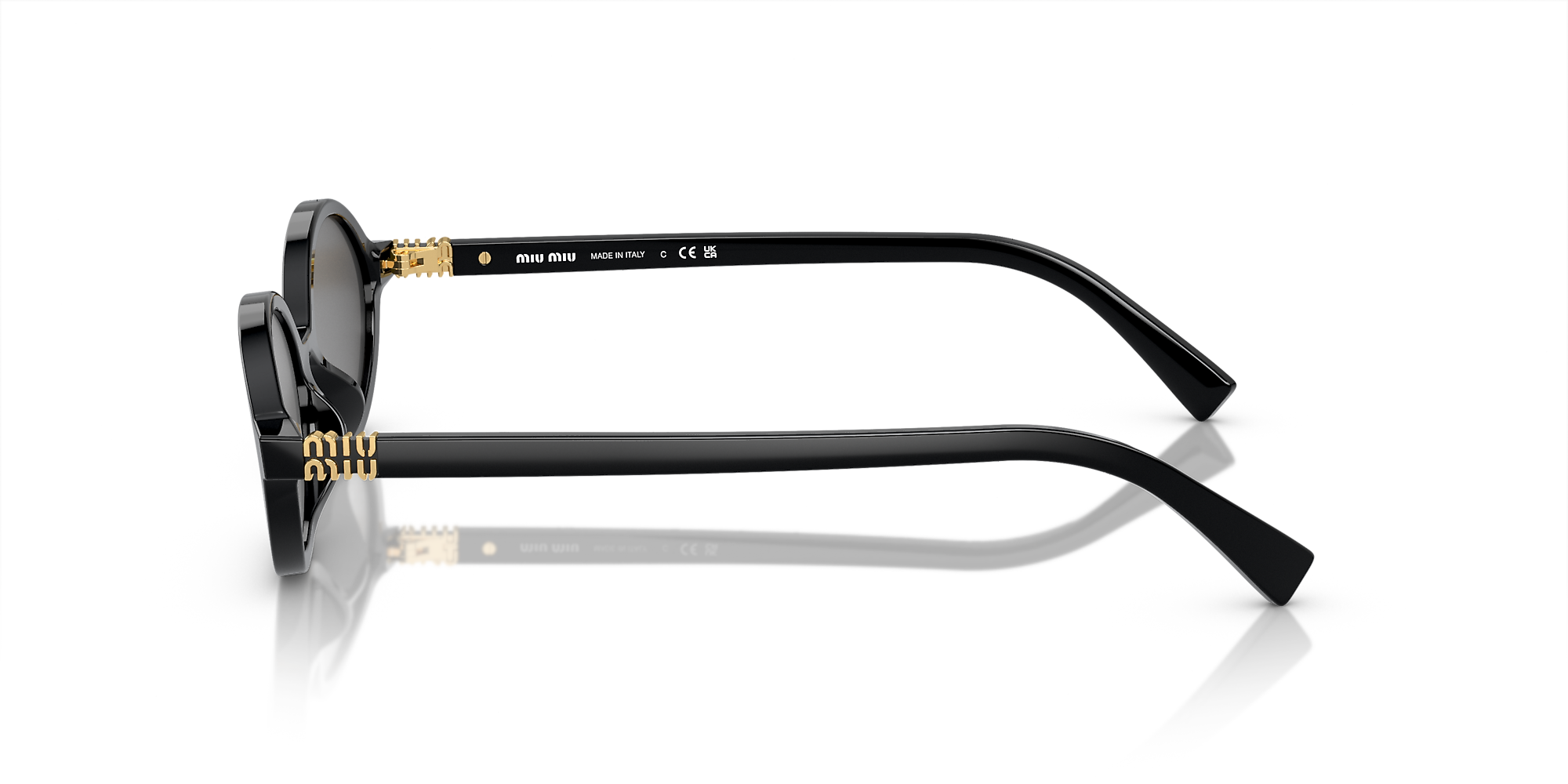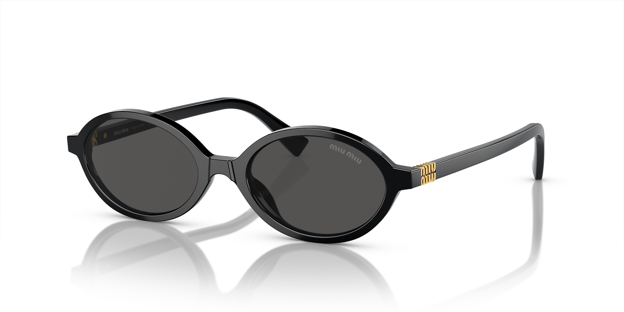 Miu Miu MU 04ZS sunglasses are a perfect blend of style and functionality. The oval shape, crafted from polished black acetate, adds a touch of sophistication to any look. The solid dark grey lenses provide excellent protection against the sun's harmful rays. Embrace the timeless elegance of these exquisite shades.