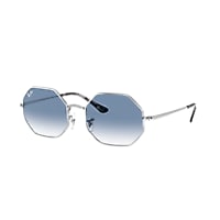Experience the perfect blend of style and performance with Ray-Ban Octagon 1972 sunglasses. Crafted from high-quality metal, these irregular-shaped glasses feature a polished silver frame that exudes a timeless appeal. The light blue gradient lenses not only add a touch of color but also provide excellent contrast and visibility. These shades are an ideal choice for those seeking to make a statement while staying protected in any setting. Available with prescription lenses.
