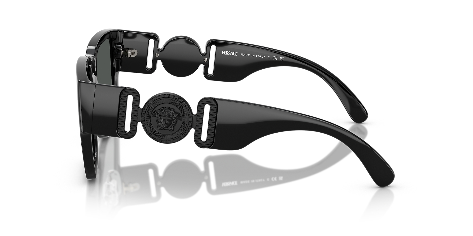 Experience the epitome of luxury with Versace VE4483D. The solid color lenses and dark grey lenses give these glasses a sleek, modern look. The rectangle shape and polished black frame create a timeless aesthetic that is perfect for everyday wear. These shades are not only stylish but also versatile. Embrace the power of fashion with Versace.