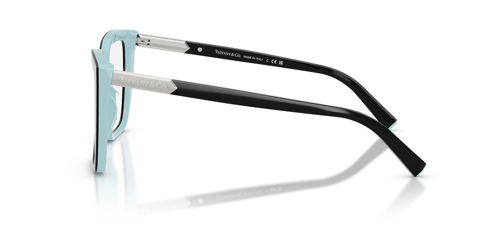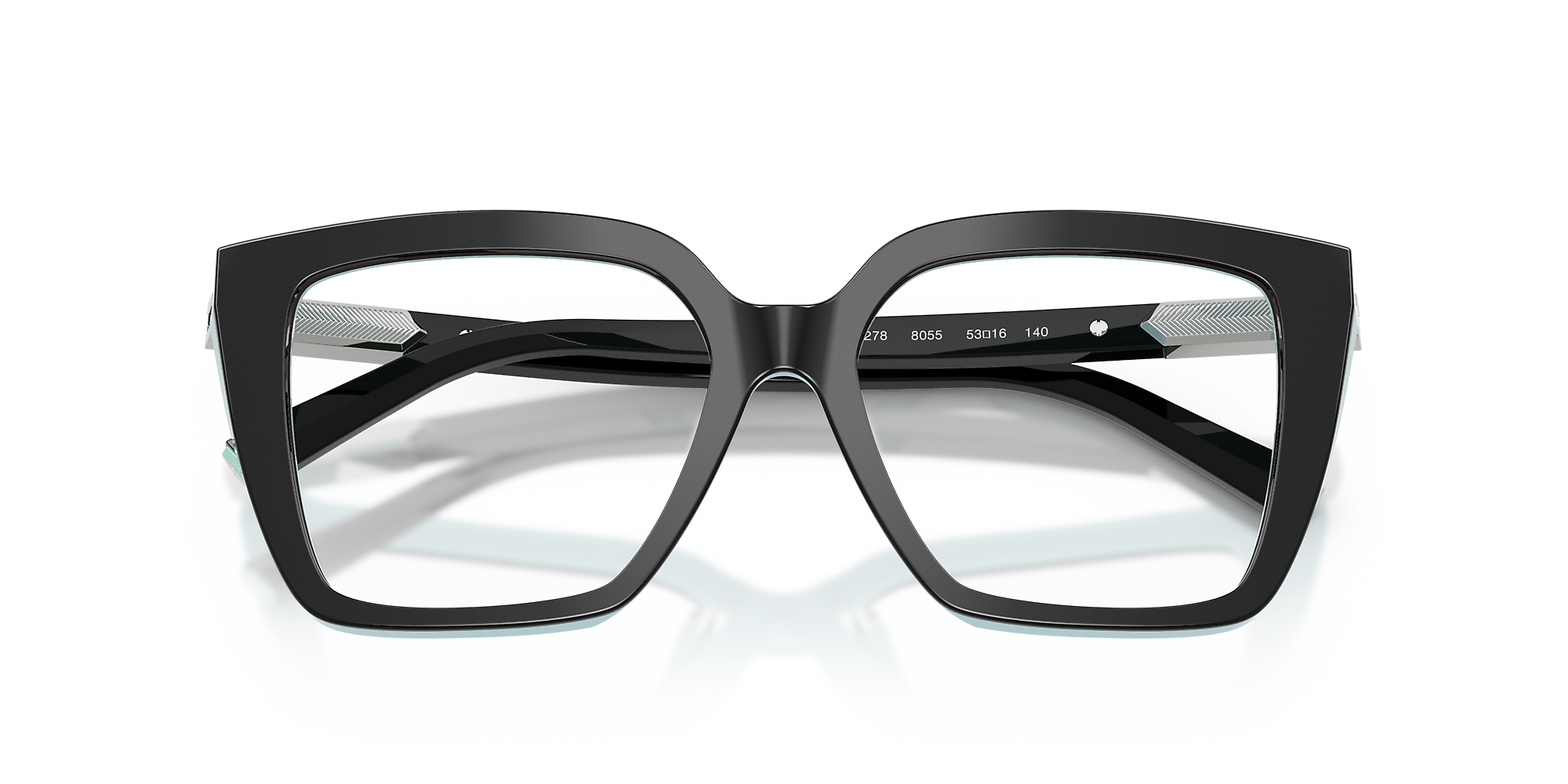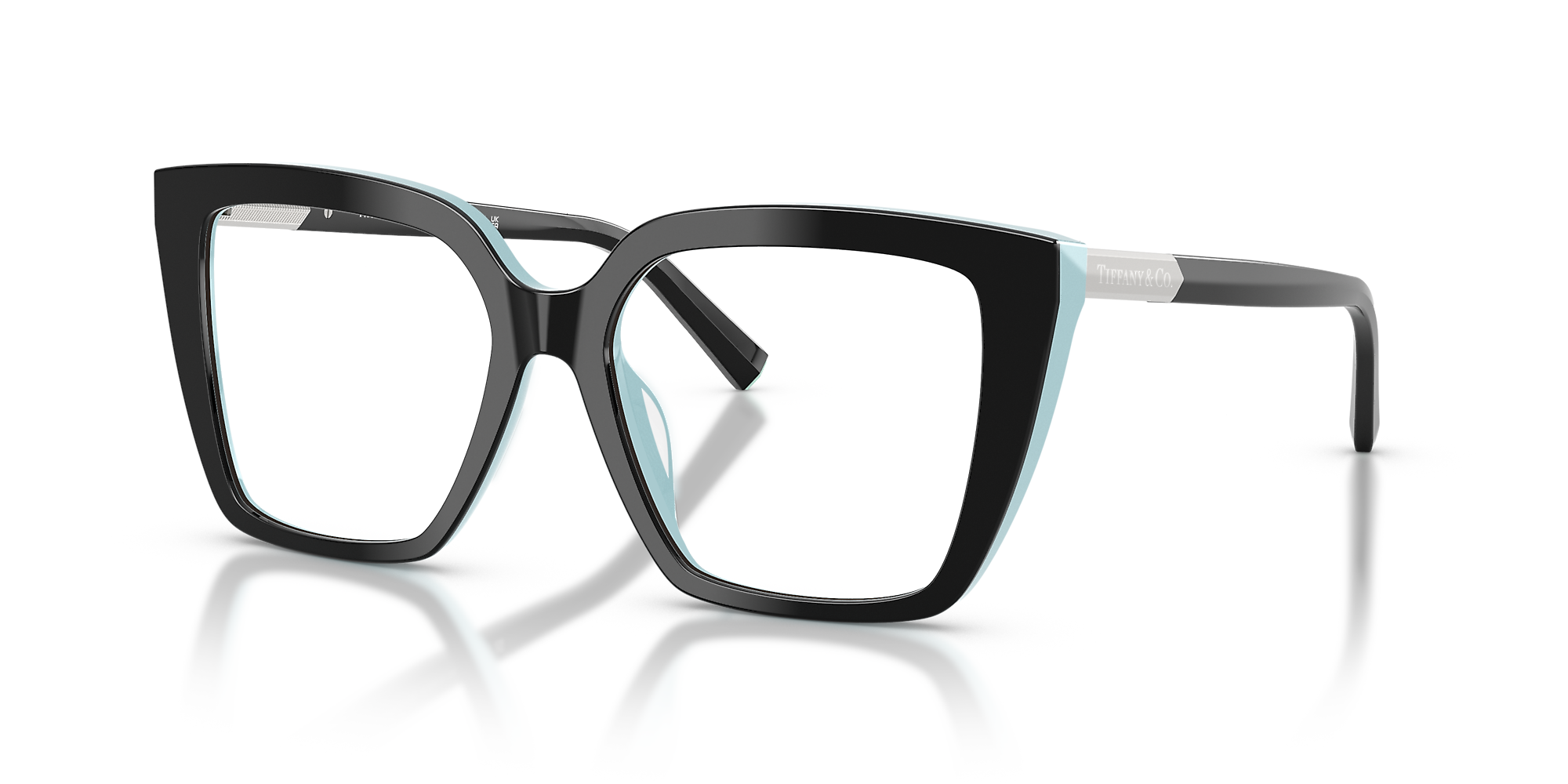 Elevate your look with Tiffany & Co. TF2278 eyeglasses. The square shape and polished black on tiffany blue frame give a modern twist to a timeless design. Crafted from durable acetate, these glasses are not only stylish but also comfortable to wear. Embrace the pinnacle of luxury and elegance with this stunning pair of frames.