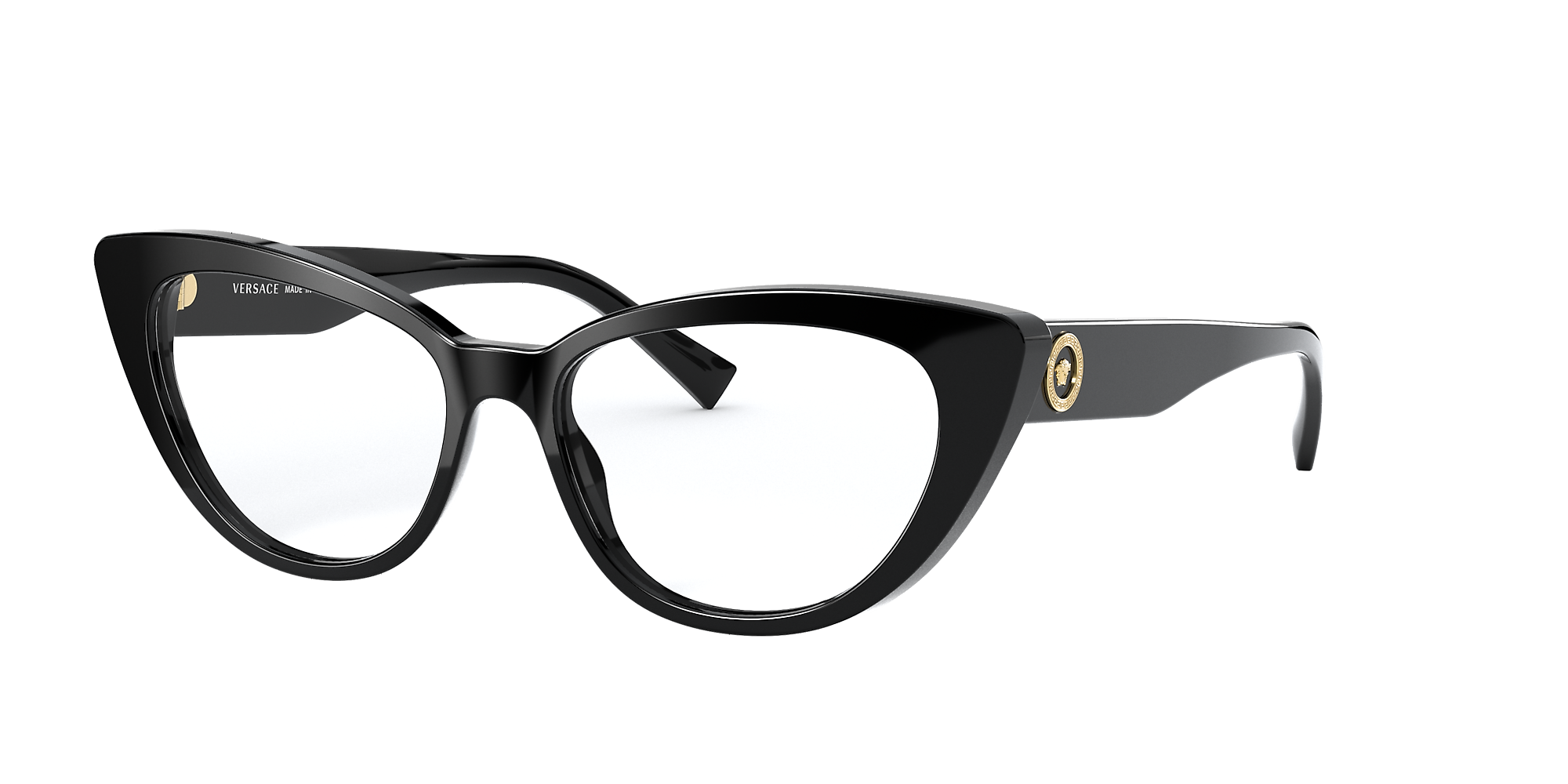 Experience the interplay between optical precision and style with Versace VE3286 eyeglasses. The cat eye shape adds a touch of vintage glamour, while the polished black acetate frame provides a modern twist. These glasses are not just a fashion statement, but also an excellent choice for everyday wear. Embrace the elegance and sophistication that only Versace can offer. Available with prescription lenses.