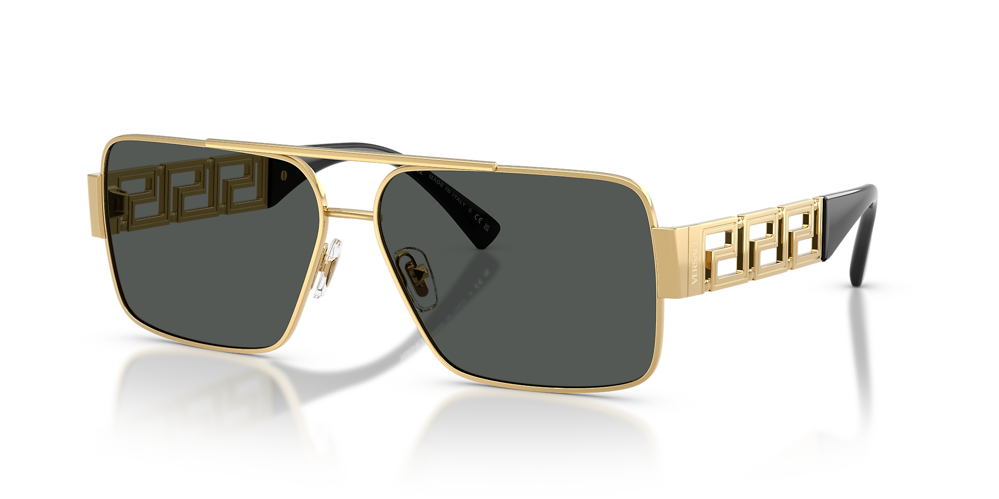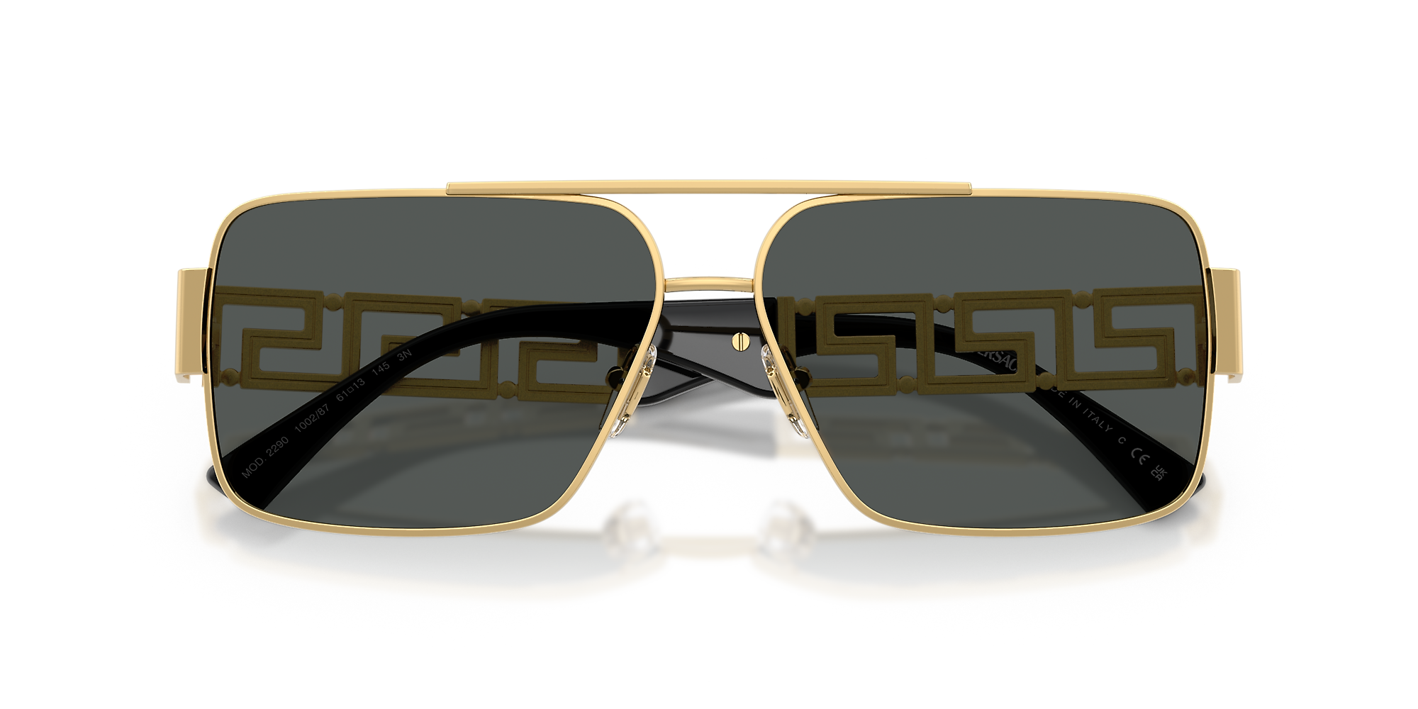 Experience the epitome of elegance and sophistication with Versace VE2290. These rectangle-shaped glasses feature a polished gold metal frame that exudes timeless glamour. The dark grey solid color lenses provide optimal protection and add a touch of mystery to your look. Embrace the power of fashion and opt for these exquisite shades from Versace.