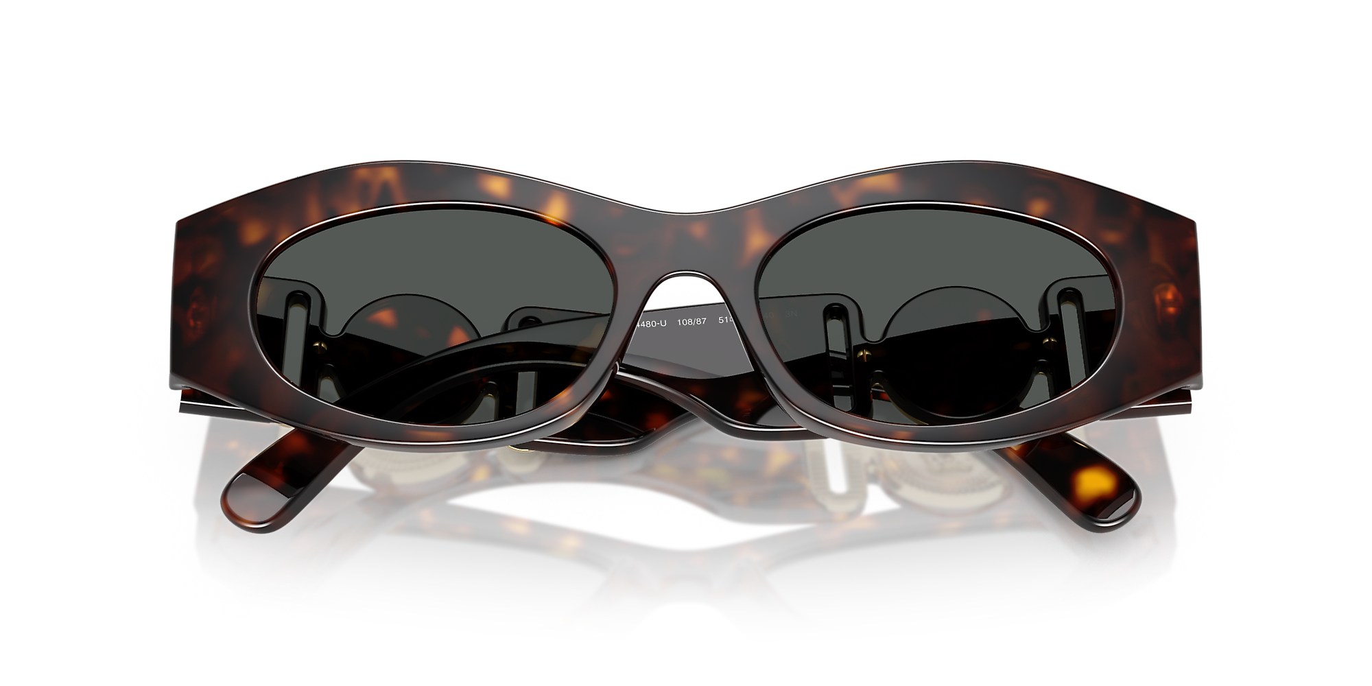 Versace VE4480U shades are a perfect blend of style and functionality. These oval-shaped glasses feature a polished havana frame that adds a touch of sophistication to any outfit. The solid dark grey lenses, treated for durability, provide optimal protection and clarity. With these stylish sunnies, you can look and feel your best while staying protected from the sun's rays.