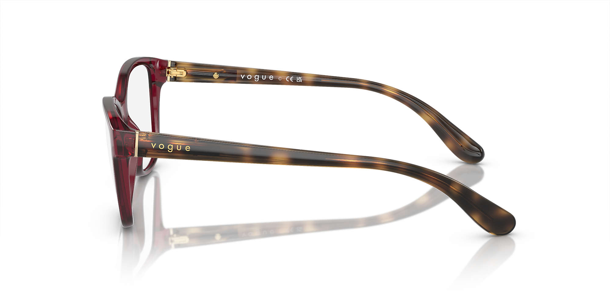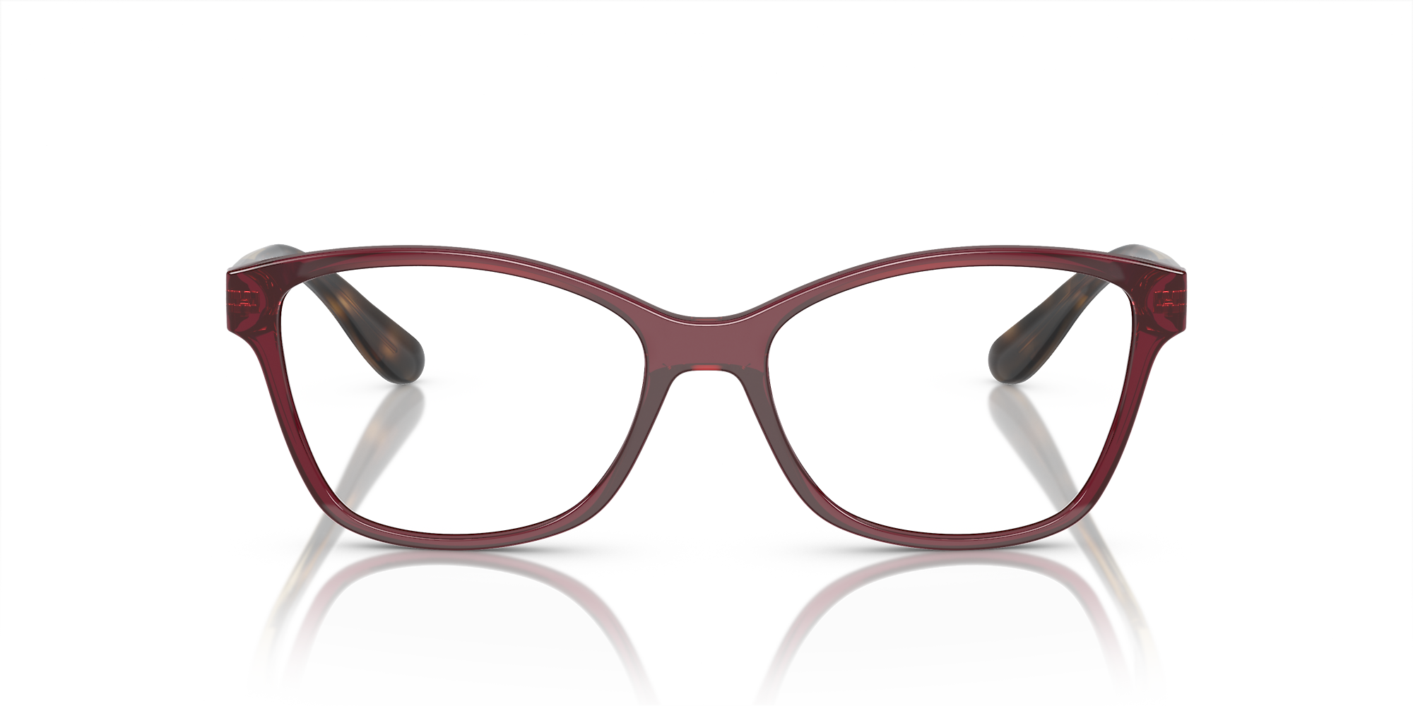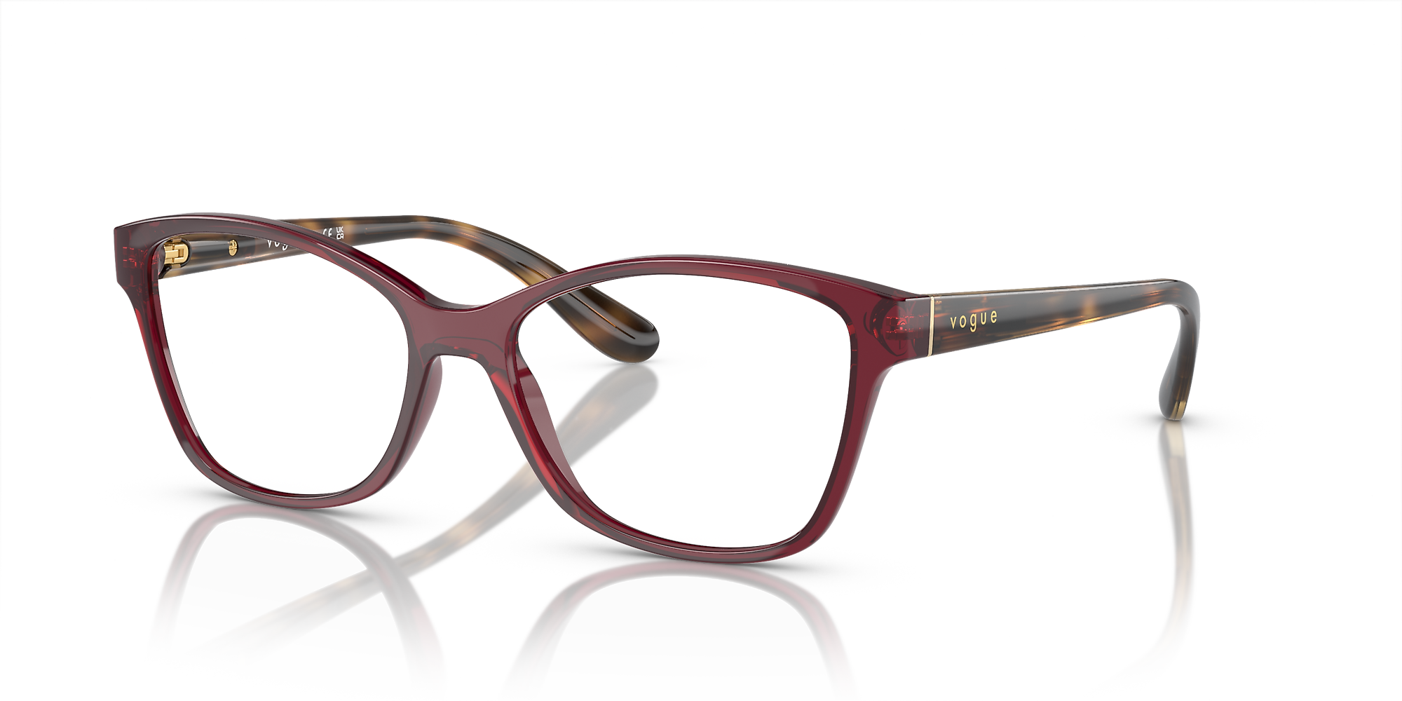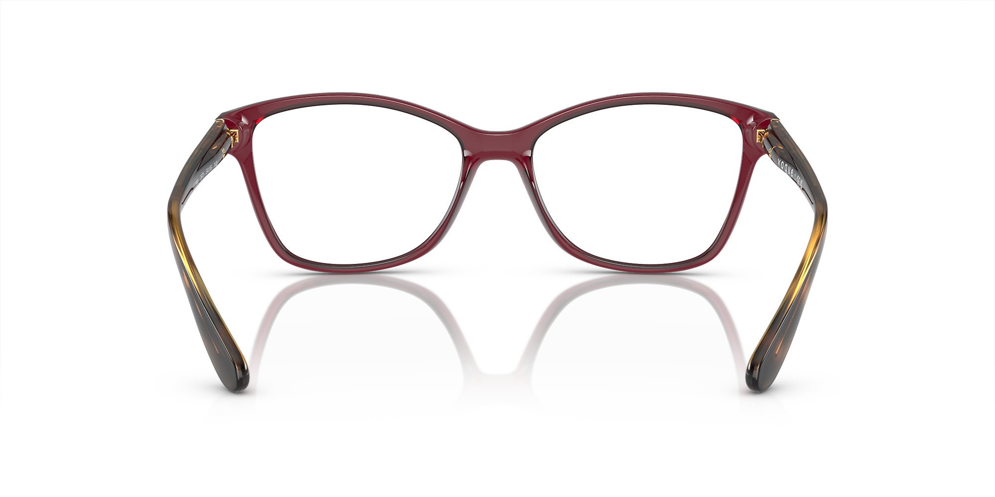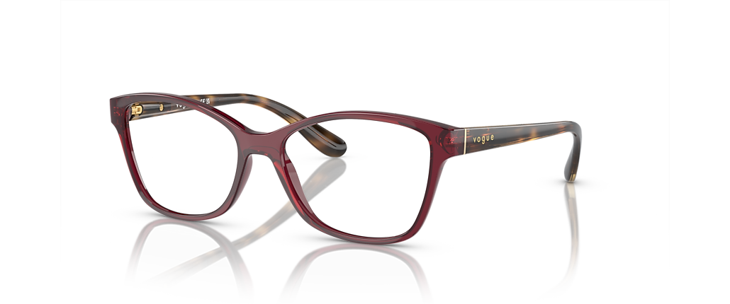 Elevate your fashion quotient with these eyeglasses from Vogue Eyewear. The polished opal dark red frame in a cat eye shape adds a touch of glamour to any look. These glasses feature a saddle bridge for added comfort and stability, making them not only stylish but also practical. Embrace the trendsetting power of Vogue Eyewear with these eyeglasses. Available with prescription lenses.