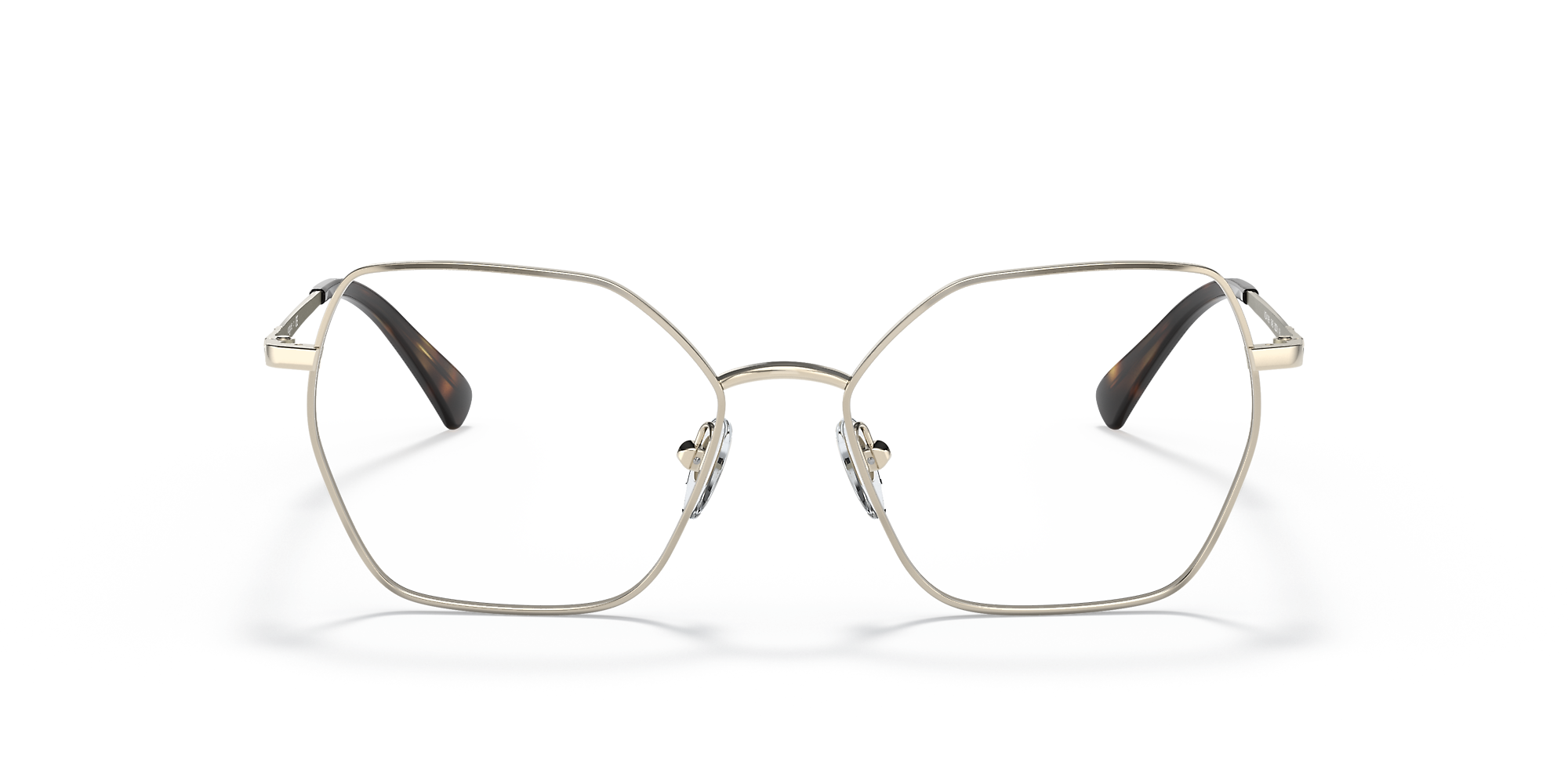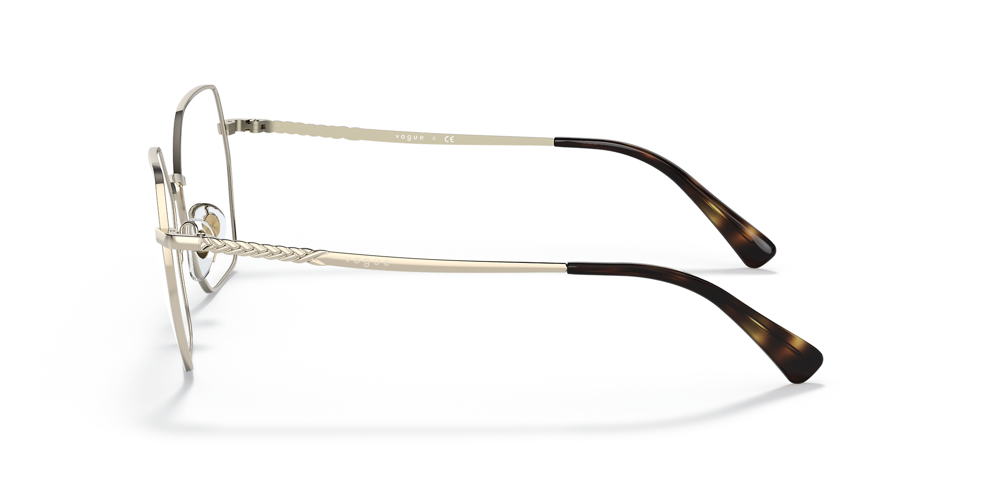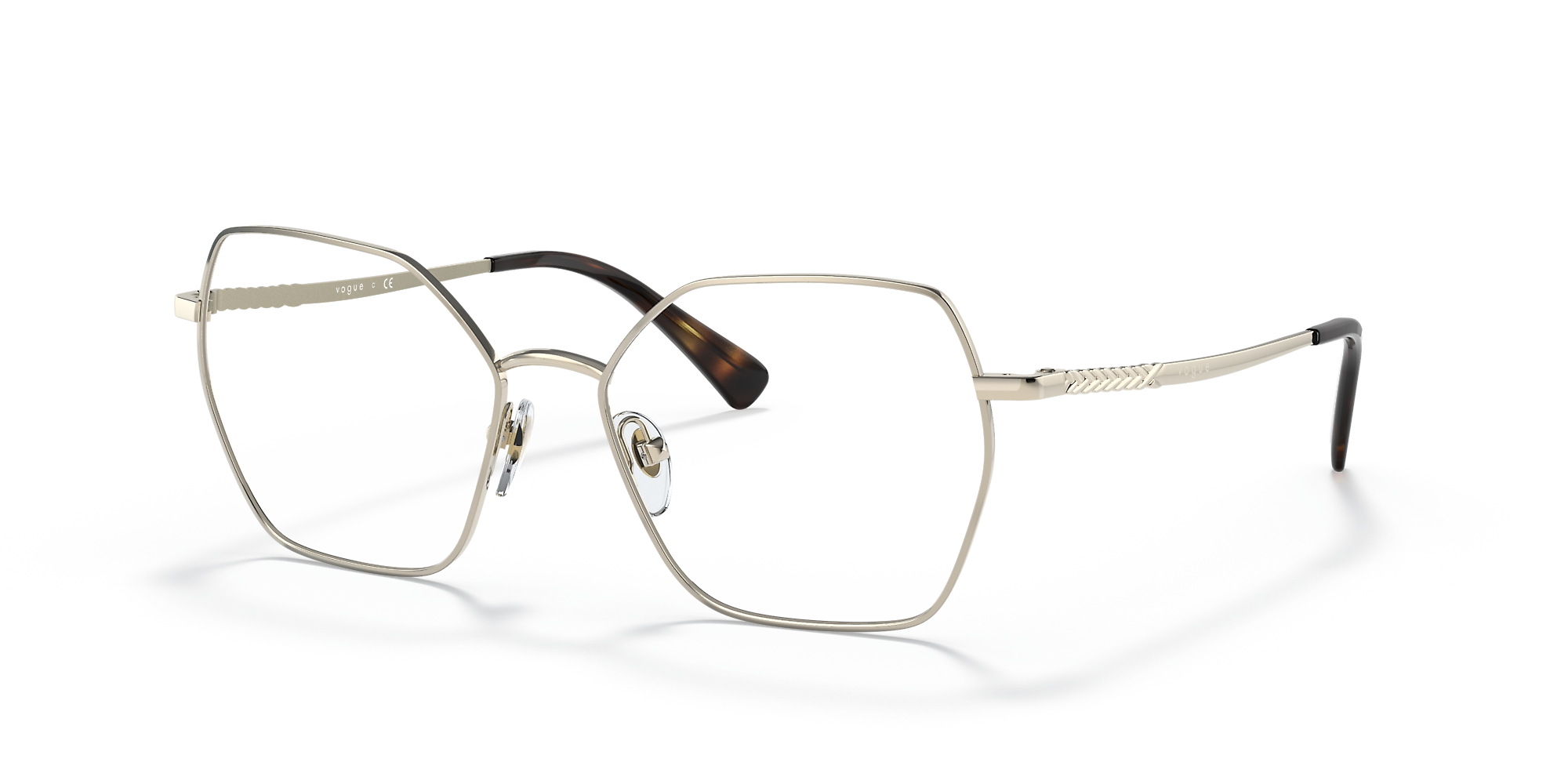 Experience the perfect balance of style and optical functionality with Vogue Eyewear VO4196 eyeglasses. Crafted from metal, these irregular-shaped frames feature a polished finish in a striking pale gold color, adding a touch of glamour to your look. The unique design and high-quality material ensure durability and comfort. Embrace your individuality while staying on trend with these stylish shades. Available with prescription lenses.