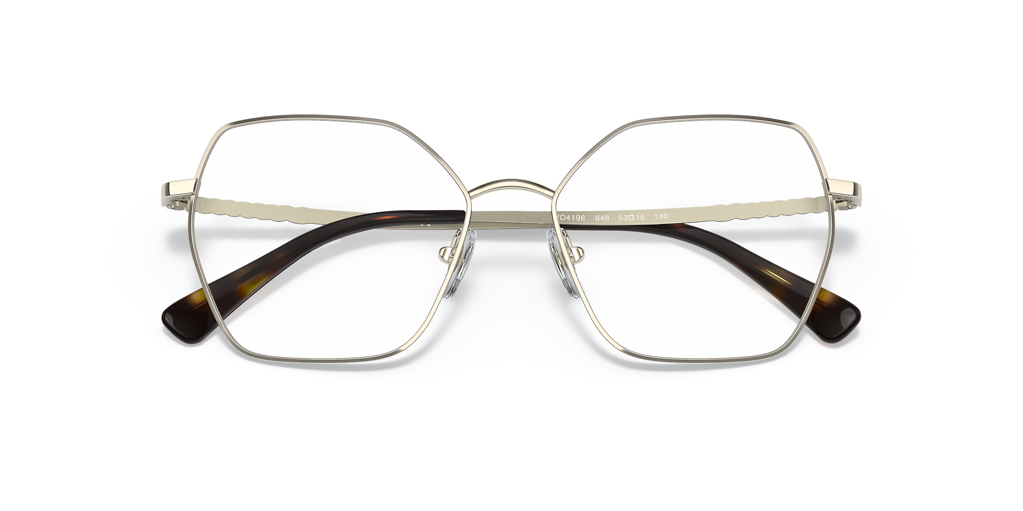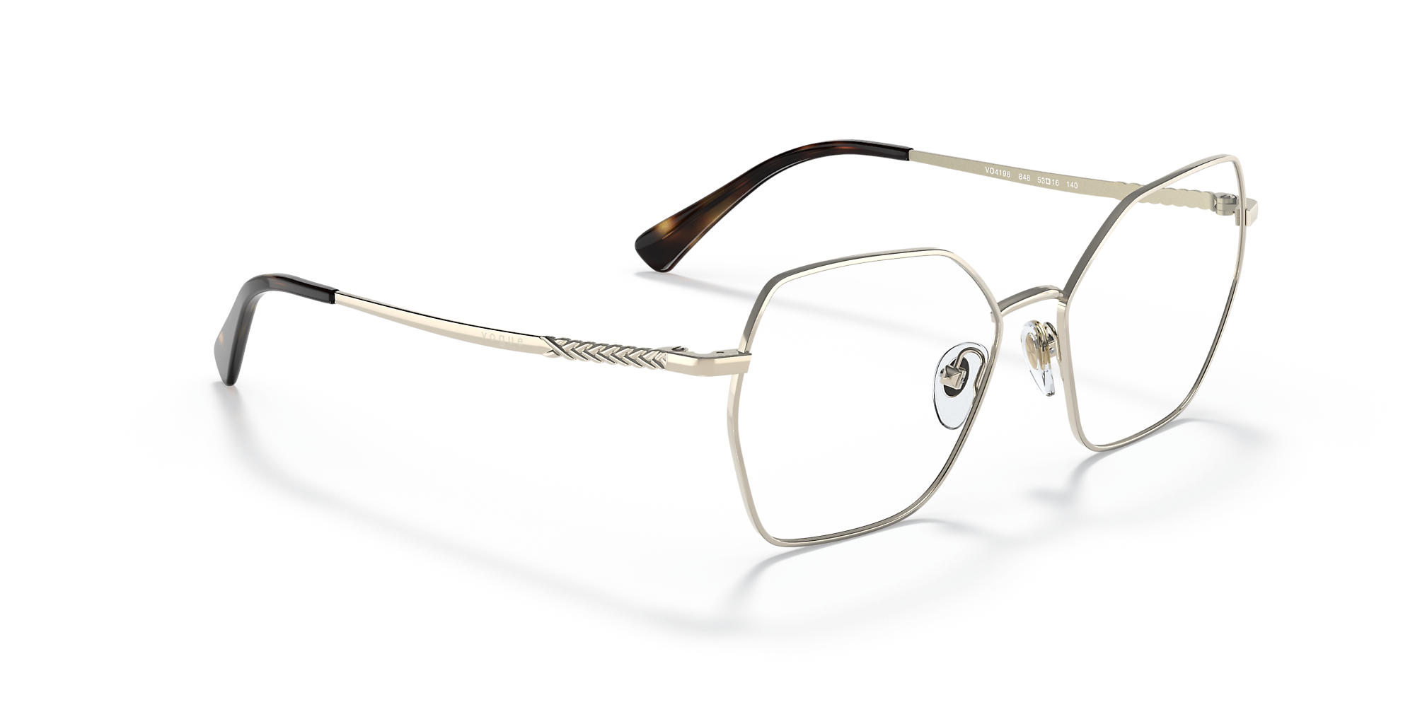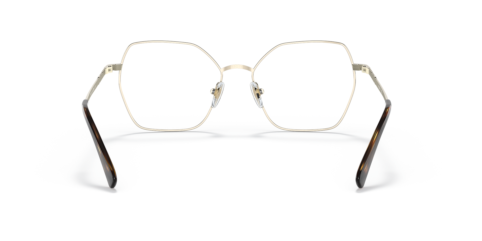 Experience the perfect balance of style and optical functionality with Vogue Eyewear VO4196 eyeglasses. Crafted from metal, these irregular-shaped frames feature a polished finish in a striking pale gold color, adding a touch of glamour to your look. The unique design and high-quality material ensure durability and comfort. Embrace your individuality while staying on trend with these stylish shades. Available with prescription lenses.