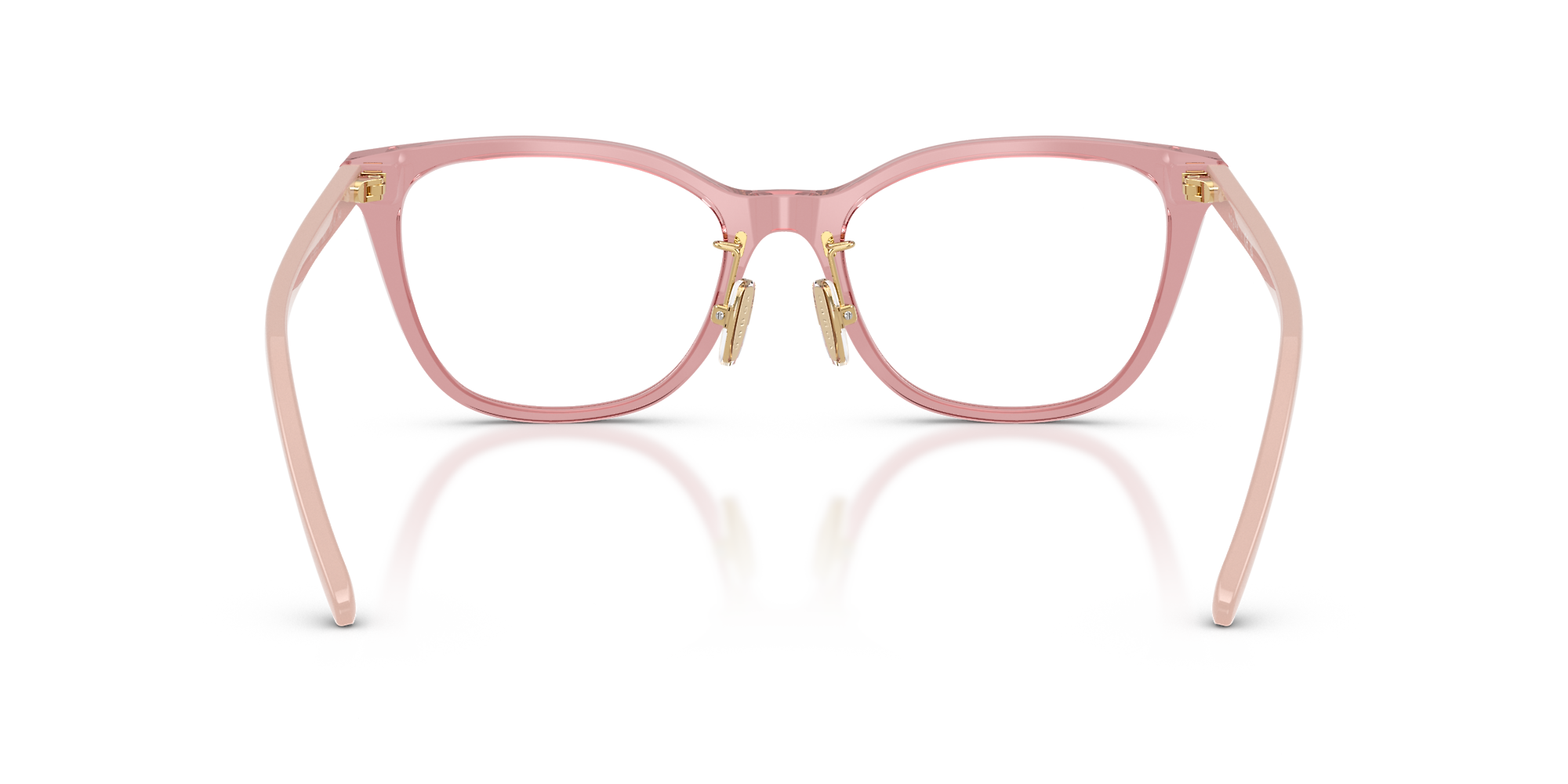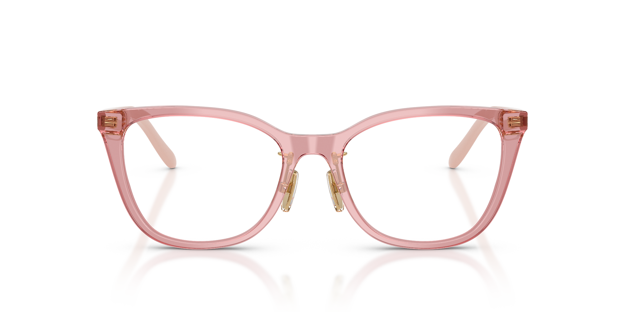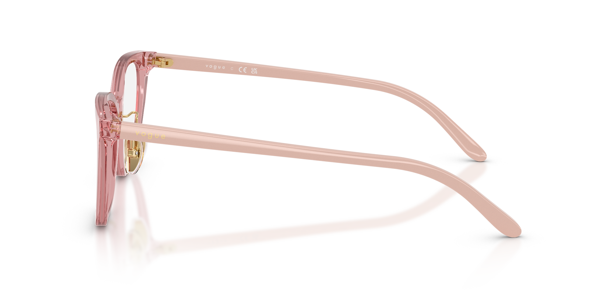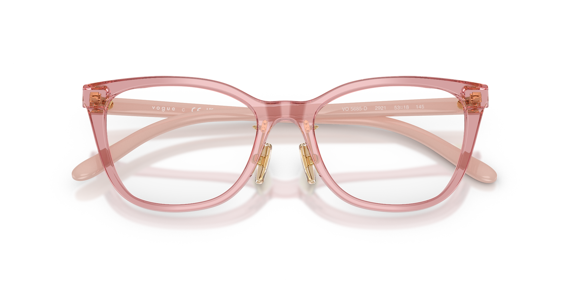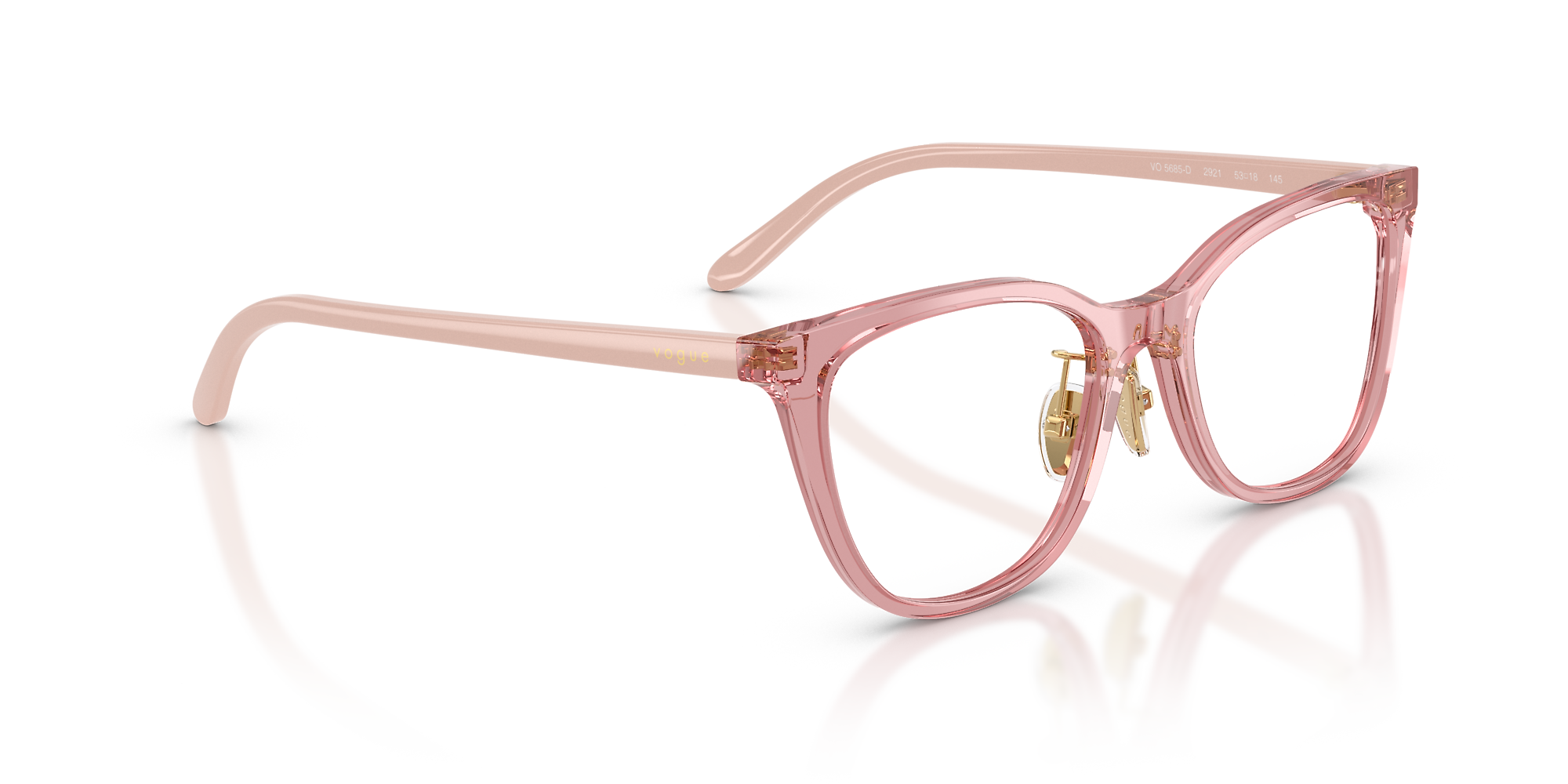 Embrace your fashion prowess with Vogue Eyewear VO5685D eyeglasses. The polished, transparent pink acetate frame in a cat-eye shape adds a touch of glamour to any outfit. These frames are not just stylish but also provide excellent vision enhancement. Embrace the power of style with these versatile glasses.