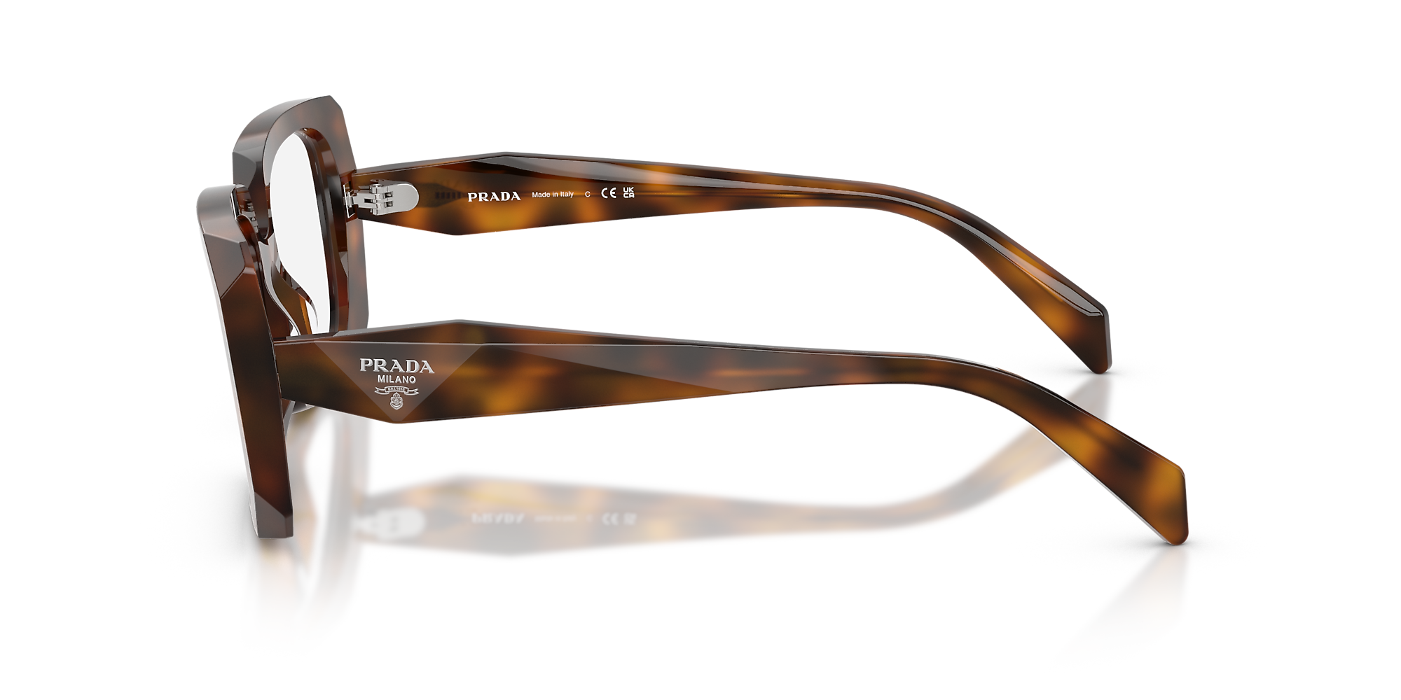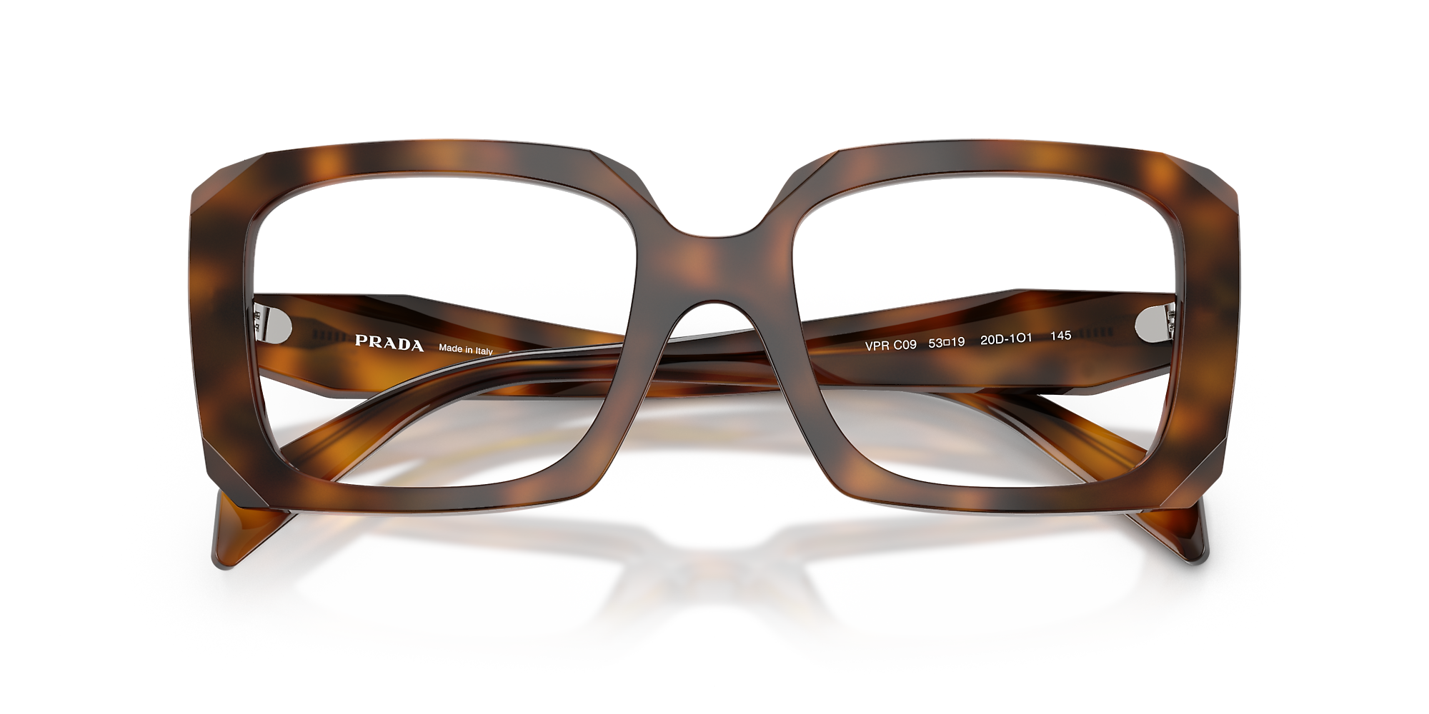 Enhance your style with Prada PR C09V eyeglasses. The pillow shape and polished juniper tortoise acetate frame give a chic and unique look, while the black color adds a touch of elegance. These glasses are versatile and perfect for everyday wear, making them a must-have accessory for stylish individuals.